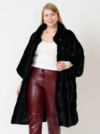 Женское пальто на молнии с норковым воротником премиум класса 2040, черное, размер 48, артикул 63640