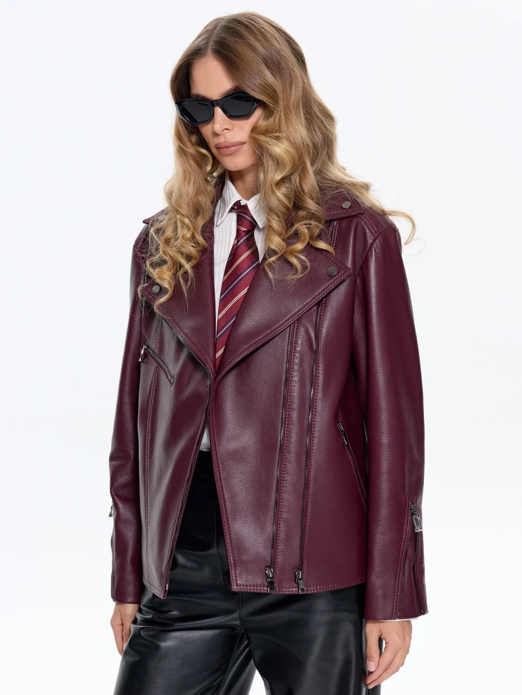 Товар бордовая кожаная женская куртка косуха 3047, размер 46, артикул 24770 выполнен из натуральной кожи с застежкой молния. Рассчитан на сезон: весна-лето. Длина изделия 65 см, силуэт прямой.
