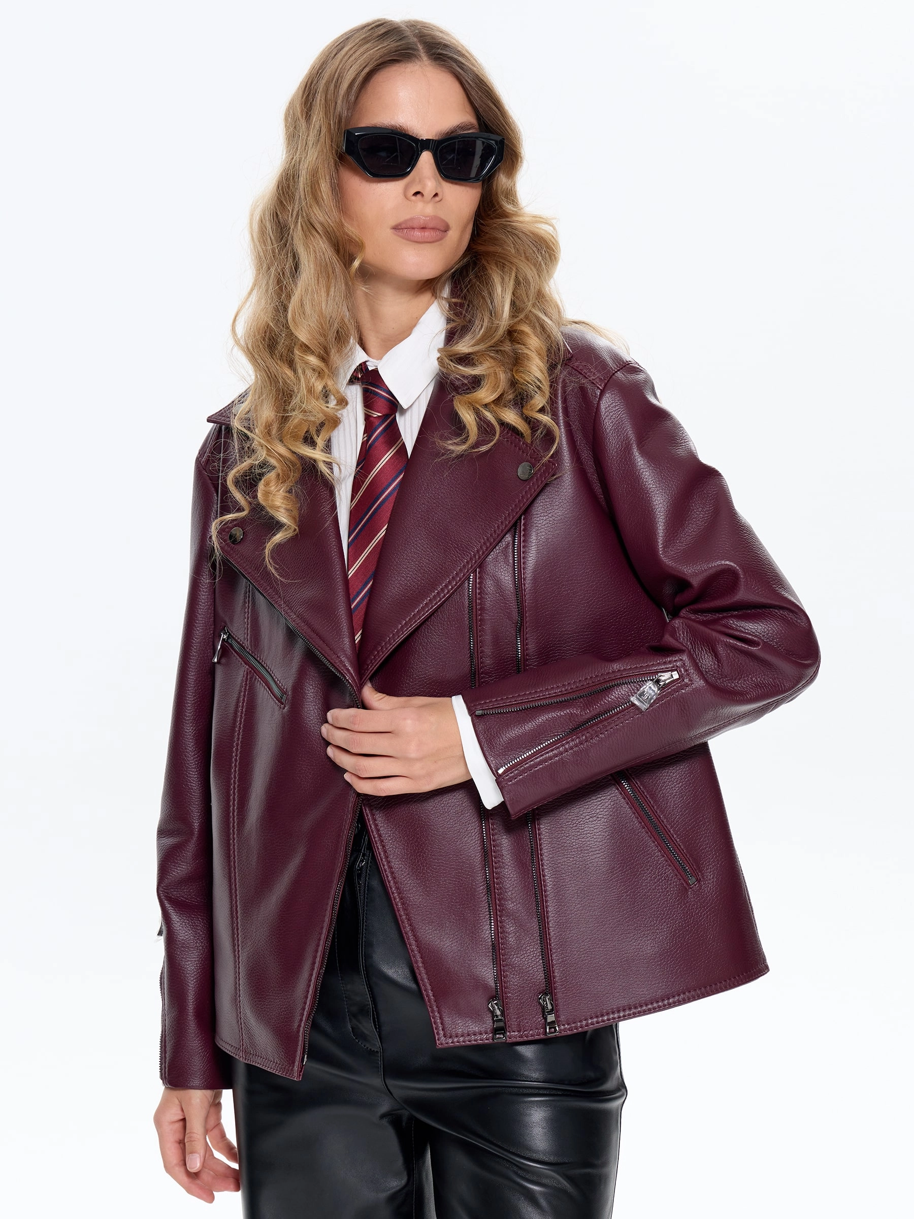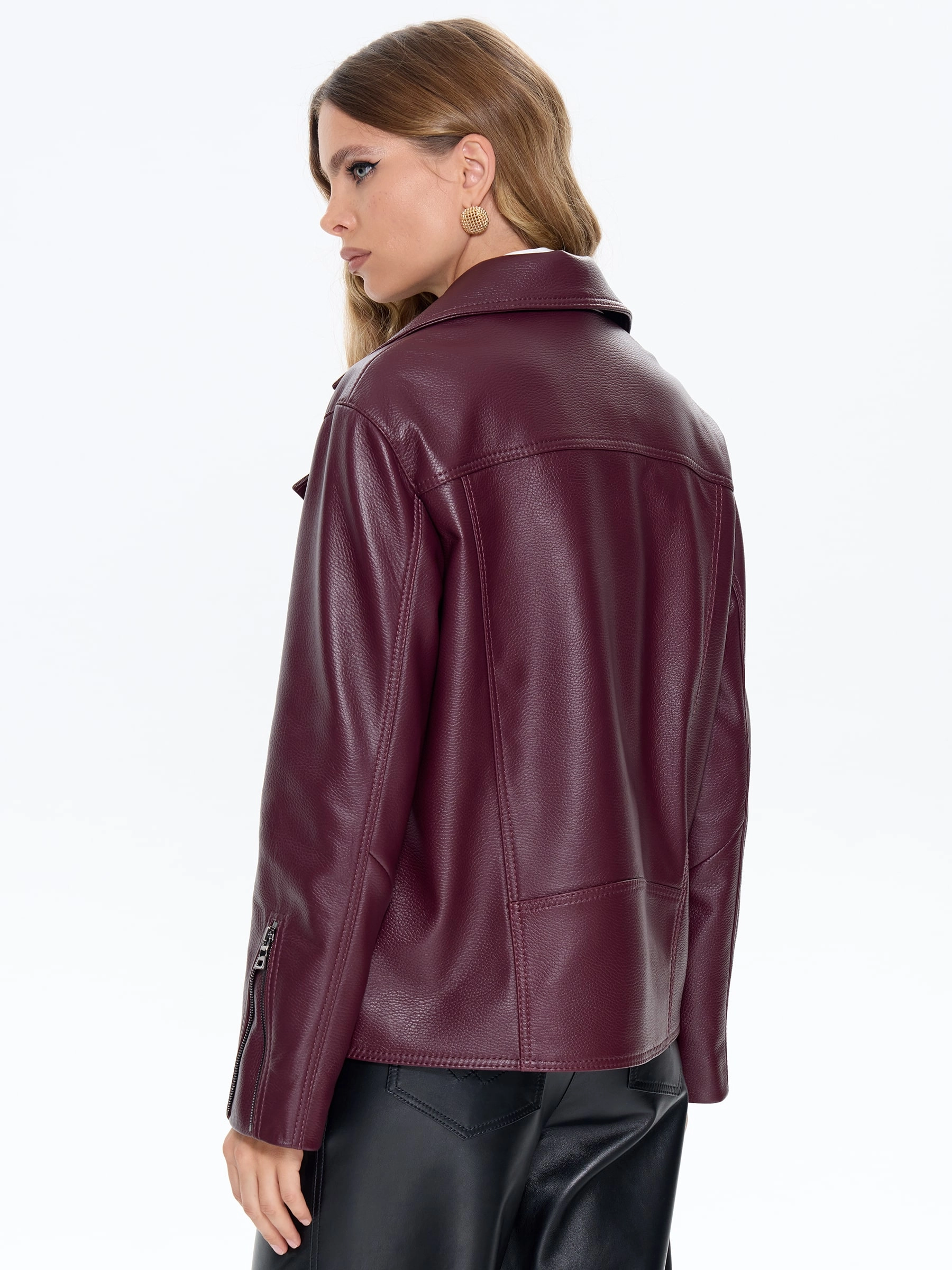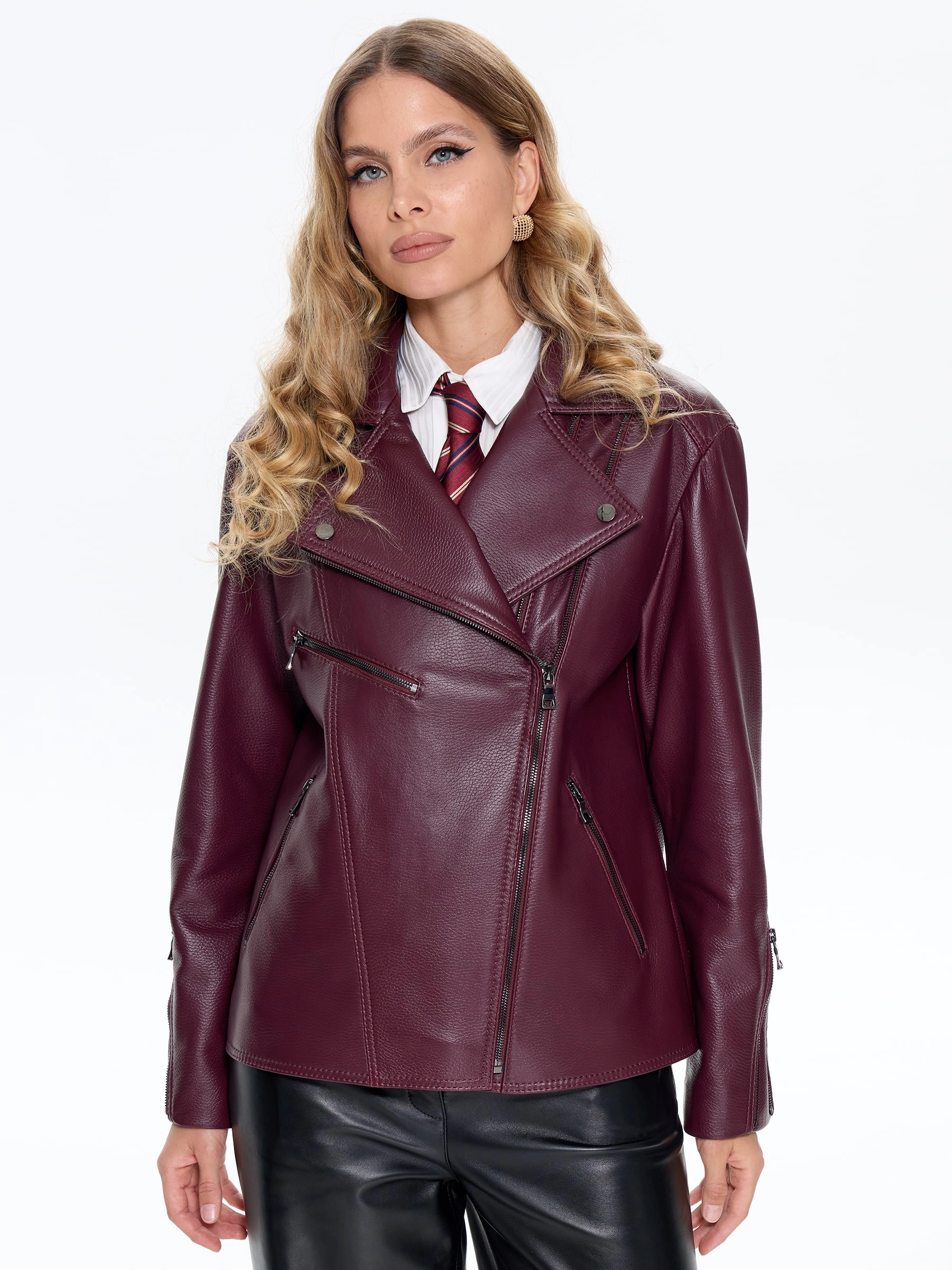 Бордовая кожаная женская куртка косуха 3047, размер 46, артикул 24770