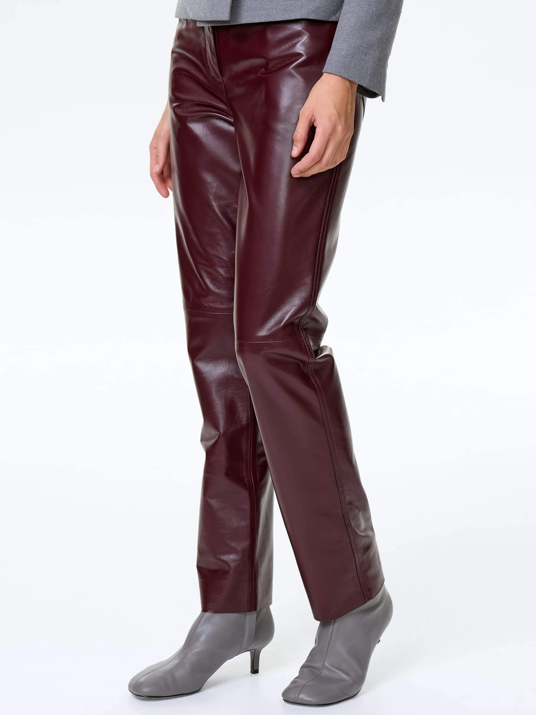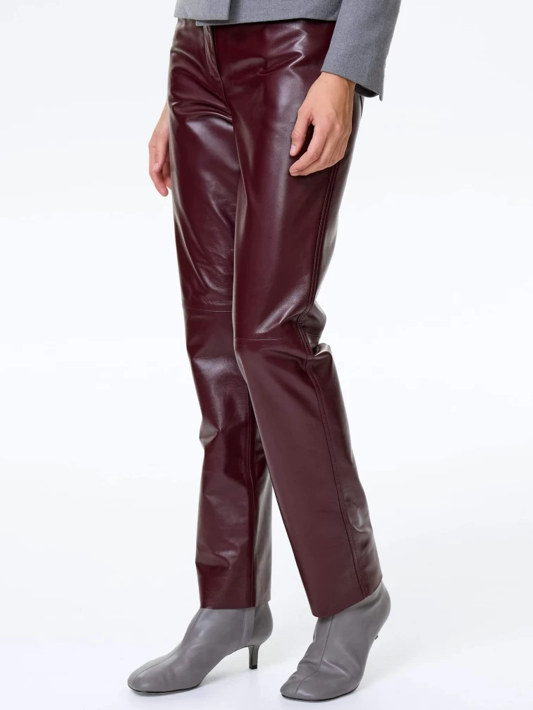 Бордовые зауженные кожаные женские брюки 02, размер 42, артикул 85492
