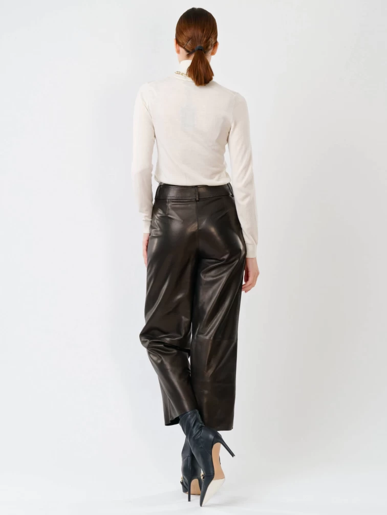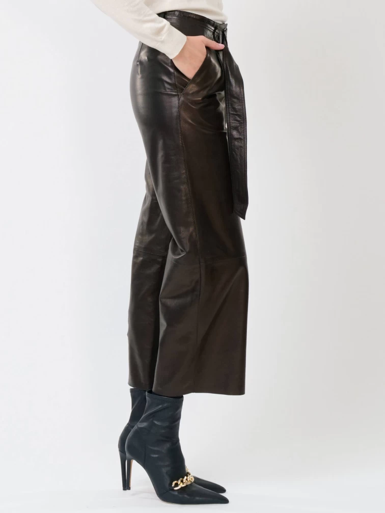 Укороченные женские кожаные брюки 05, черные, размер 42, артикул 85251