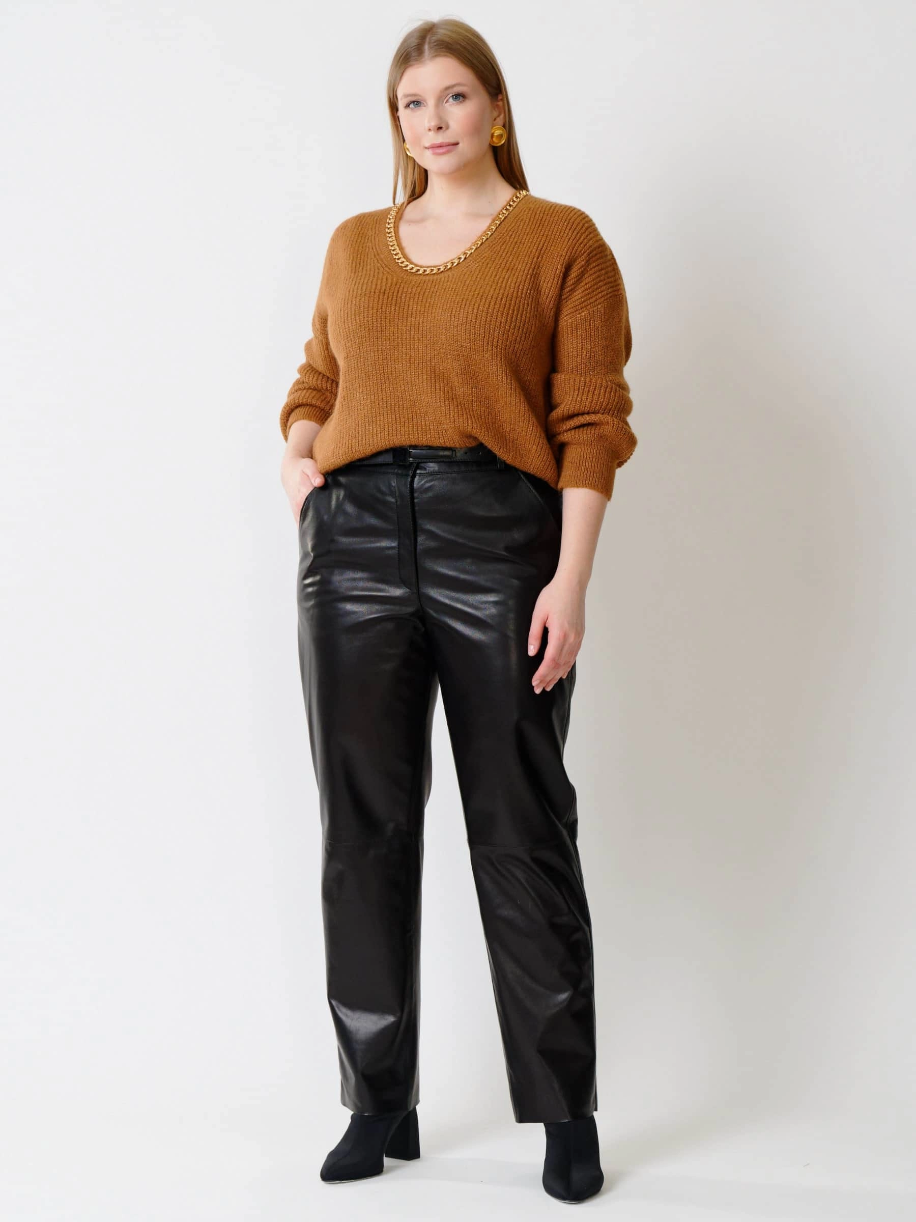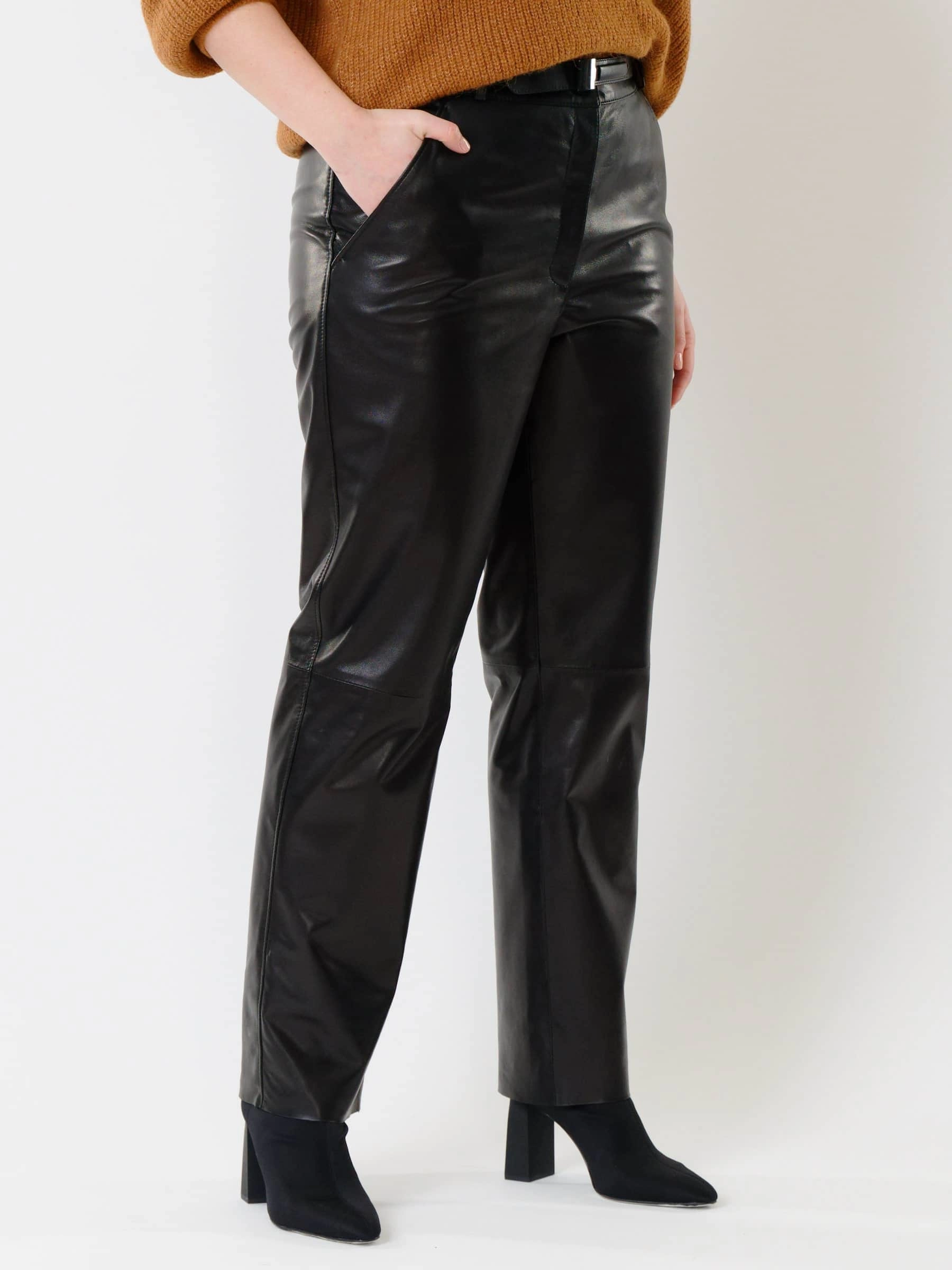 Черные прямые женские кожаные брюки 04, размер 46, артикул 85392