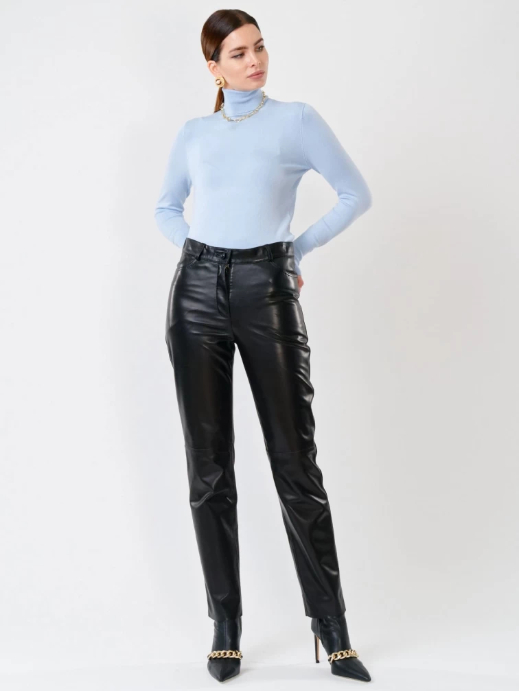 Товар черные зауженные женские кожаные брюки 02, размер 44, артикул 85232 выполнен из натуральной кожи с застежкой молния. Рассчитан на сезон: демисезон. Длина изделия 105 см, силуэт прямой.