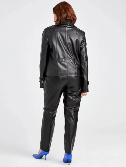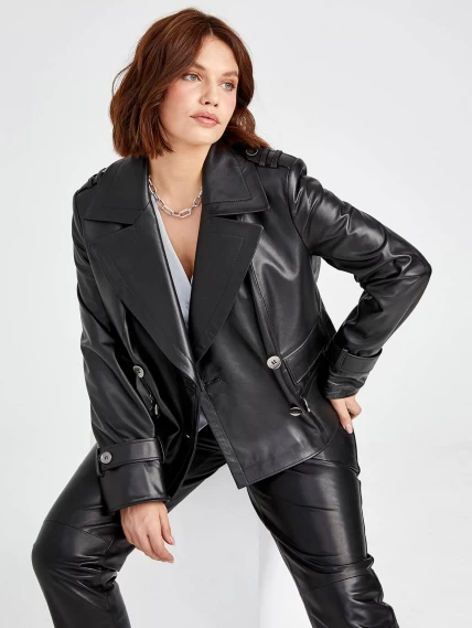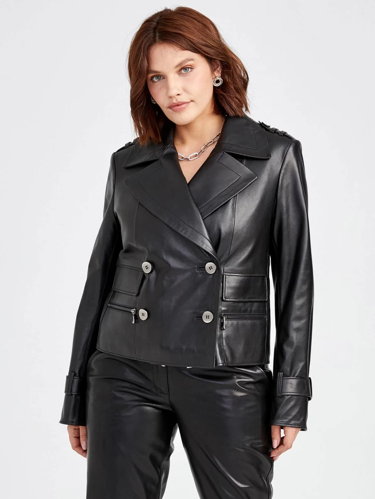 Черный двубортный женский кожаный пиджак 3014, размер 48, артикул 91570