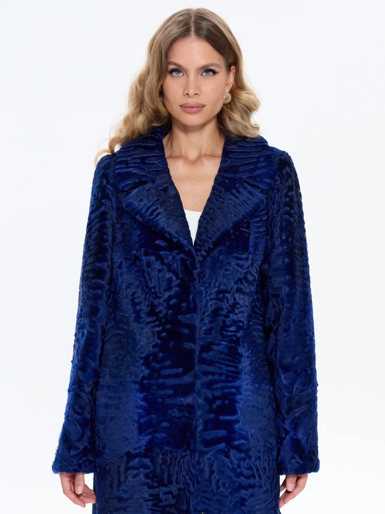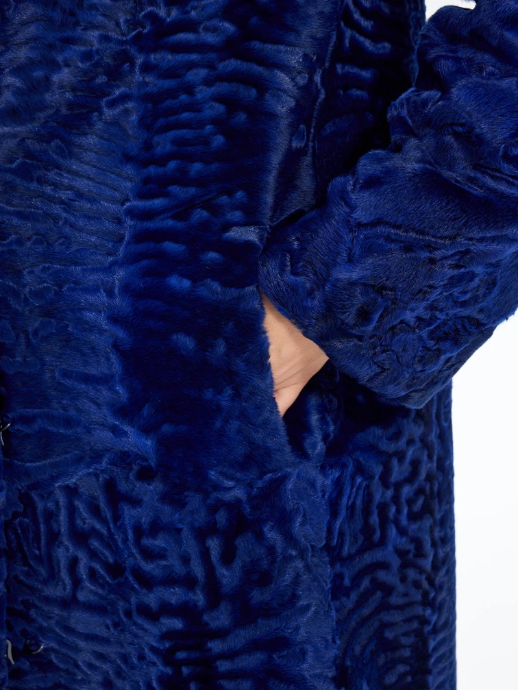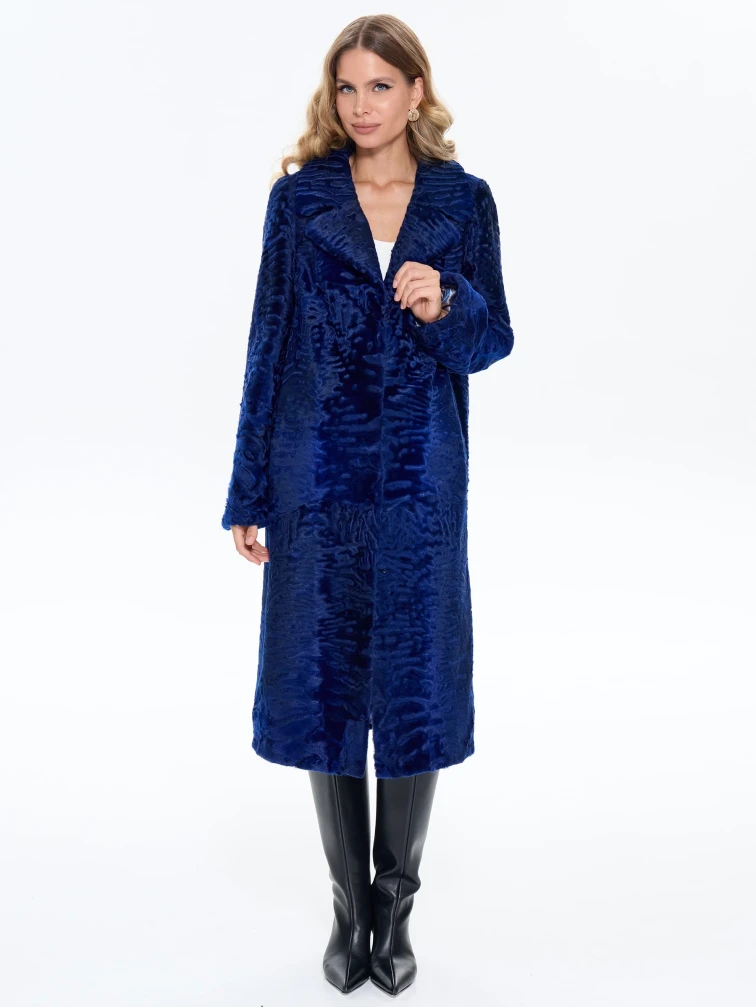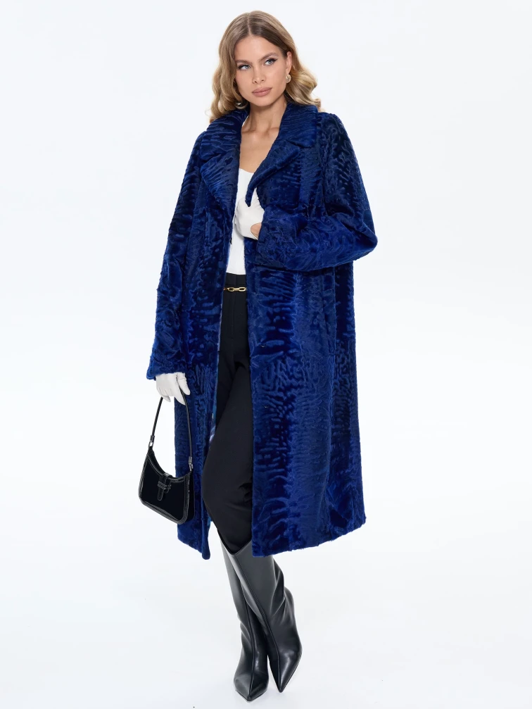 Длинная синяя каракулевая женская шуба Алиса, размер 48, артикул 65190