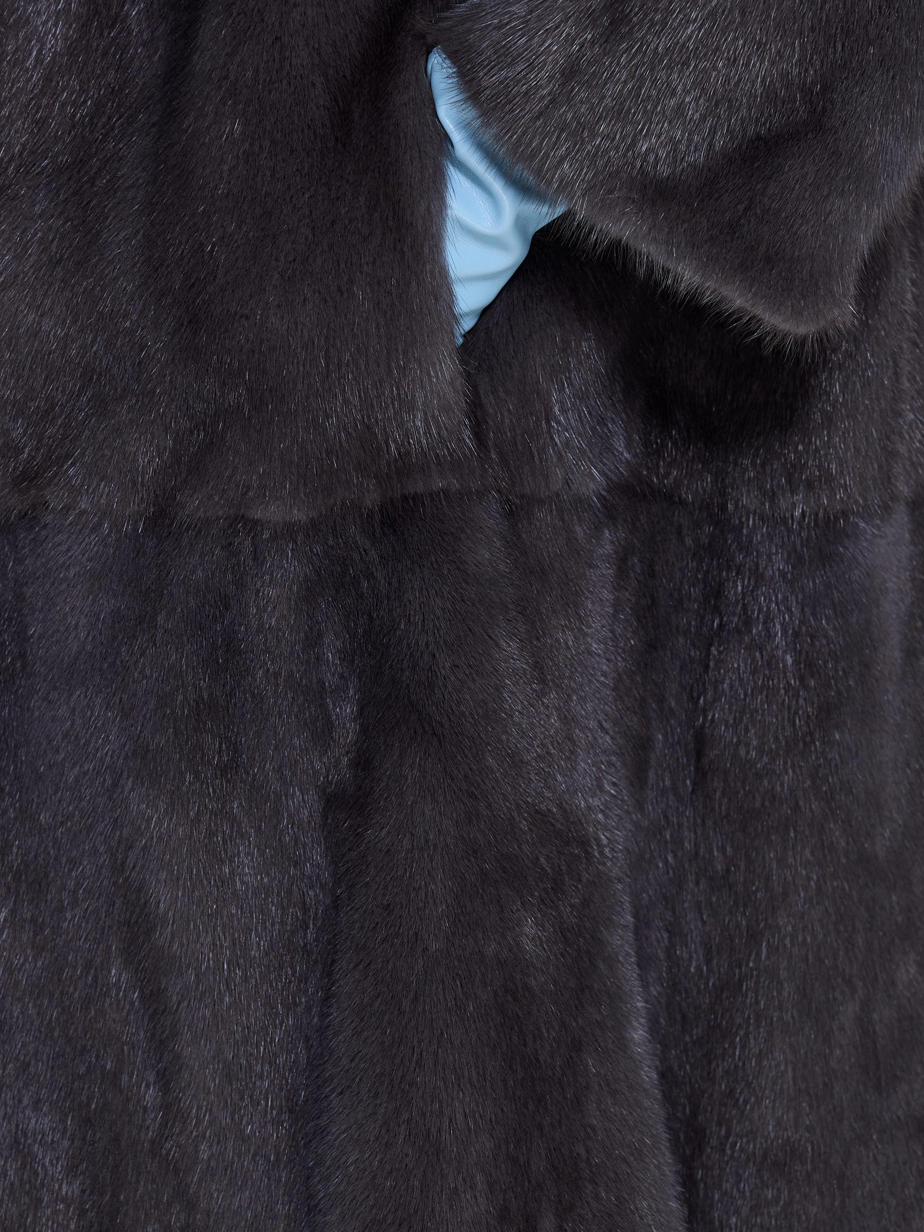 Товар длинная женcкая шуба с капюшоном классика-687, графитовая, размер 62, артикул 65440 выполнен из мех норки с застежкой клипсы. Рассчитан на сезон: зима. Длина изделия 100 см, силуэт прямой.