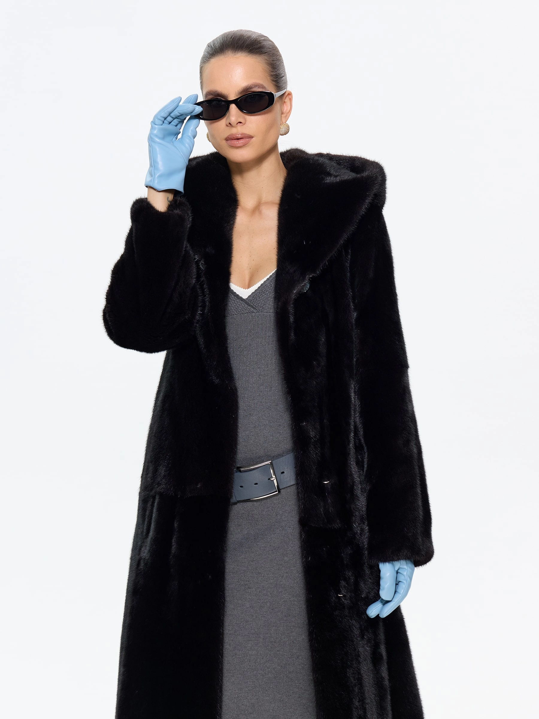 Длинная женская норковая шуба MANZARI М069, черная, размер 40, артикул 34250