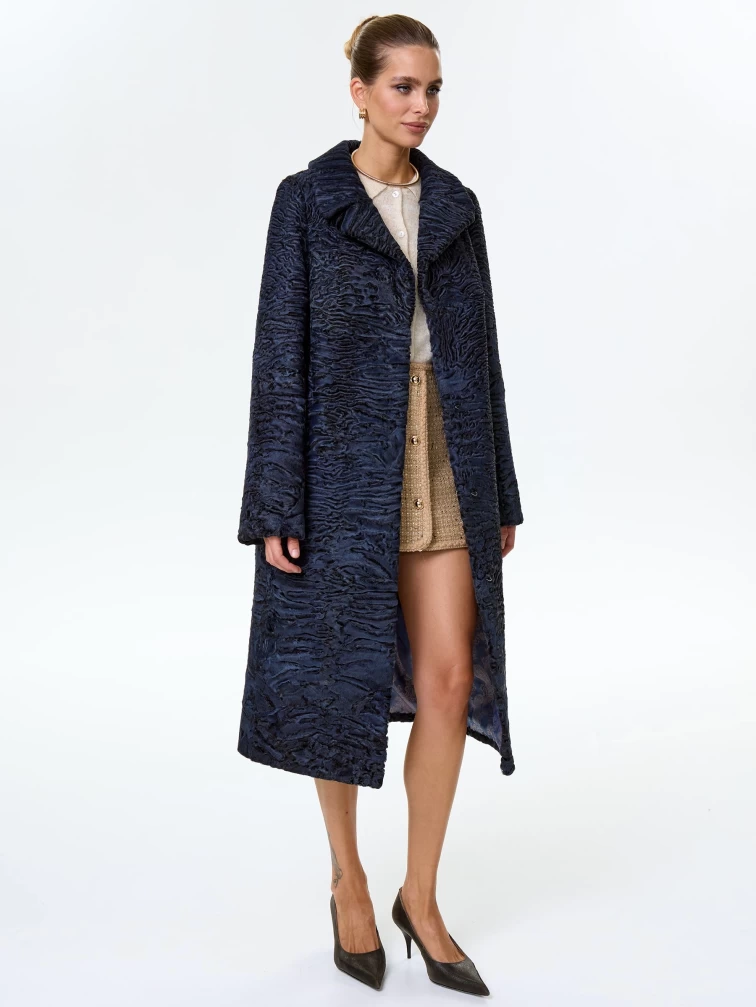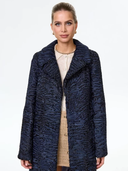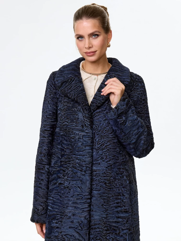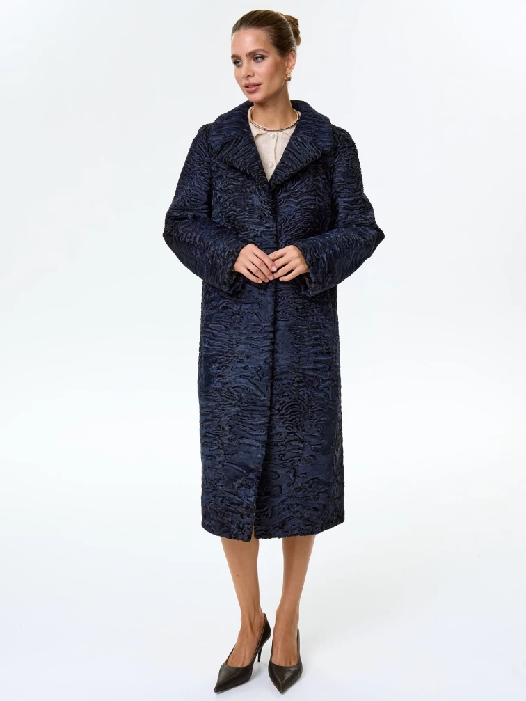 Длинное пальто из меха каракульчи для женщин премиум класса Лола(ав), синее, размер 48, артикул 33970