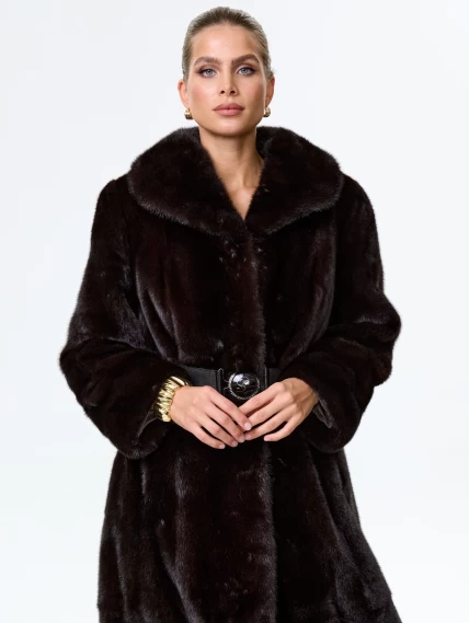 Товар длинное женское пальто из меха норки белла(в), черное, размер 52, артикул 64520 выполнен из норка с застежкой клипсы. Рассчитан на сезон: зима. Длина изделия 120 см, силуэт полуприлегающий.