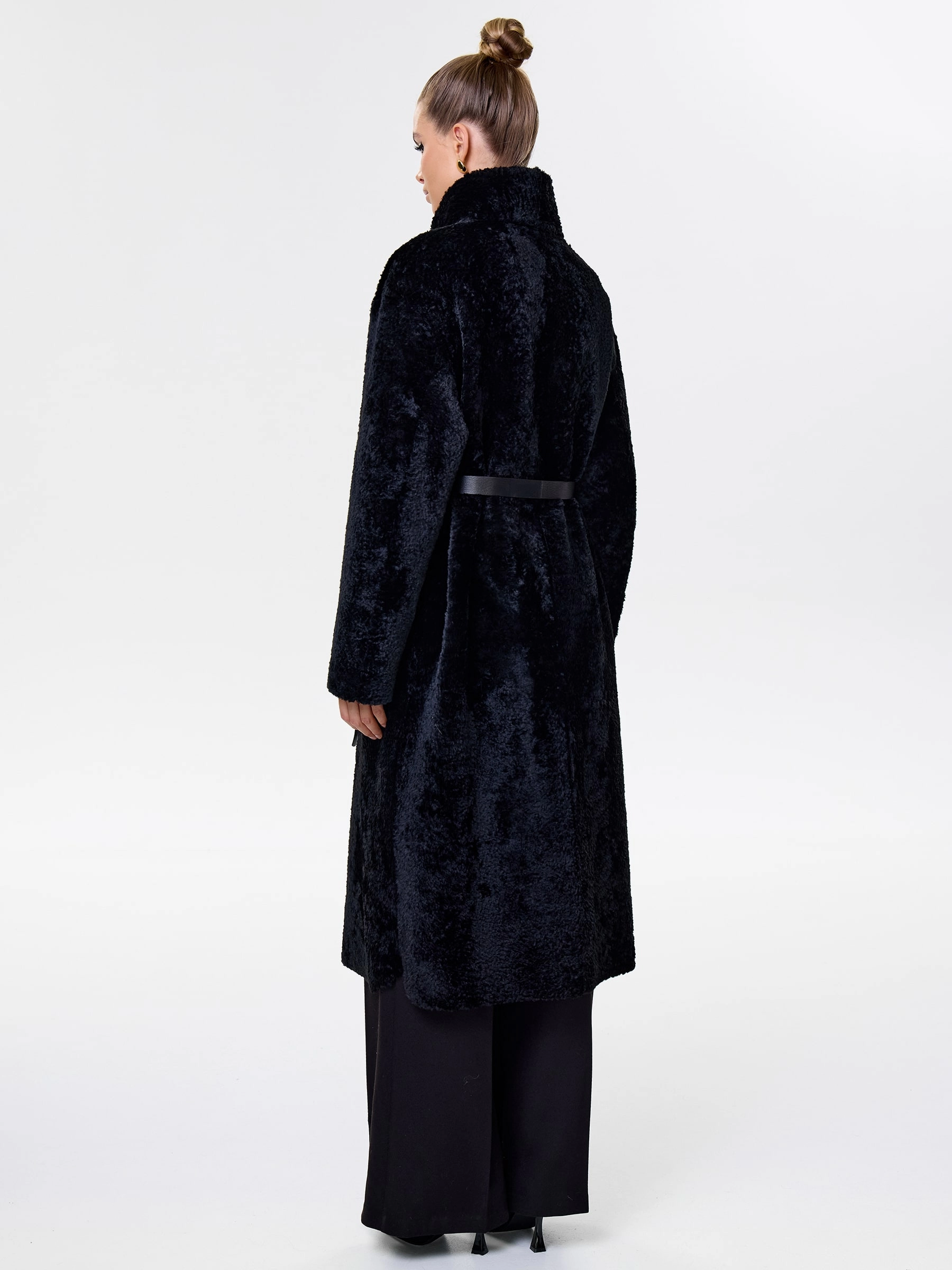Длинное женское пальто из натуральной овчины астрагана премиум класса 2060, черное, размер 44, артикул 64320