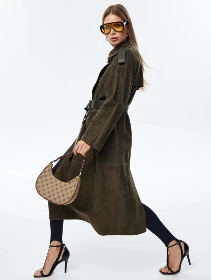 Длинный женский замшевый плащ френч оверсайз премиум класса 3070з, хаки, размер 44, артикул 23860
