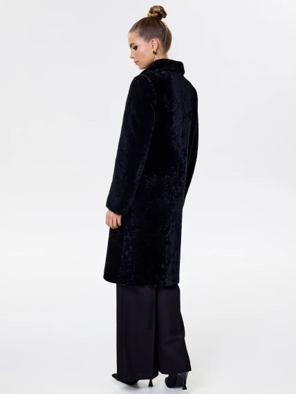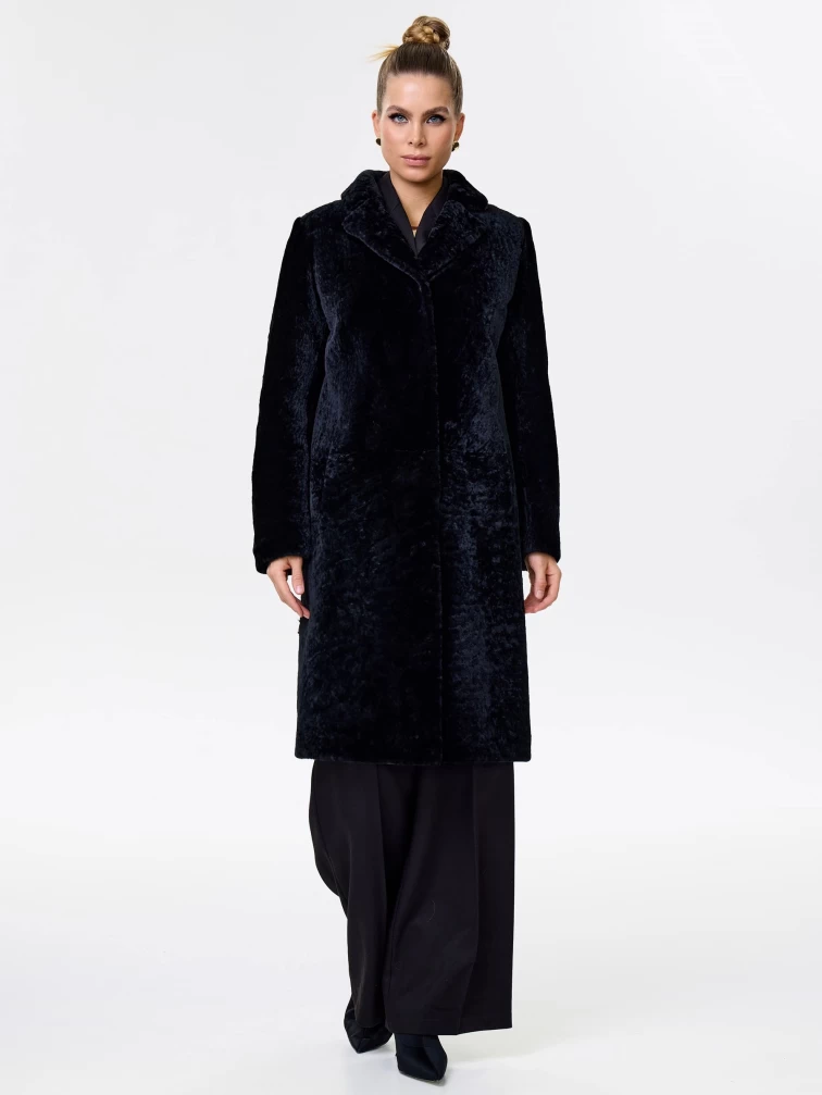 Длинная дубленка из астрагана на кнопках для женщин премиум класса 53мех, синяя, размер 46, артикул 17560