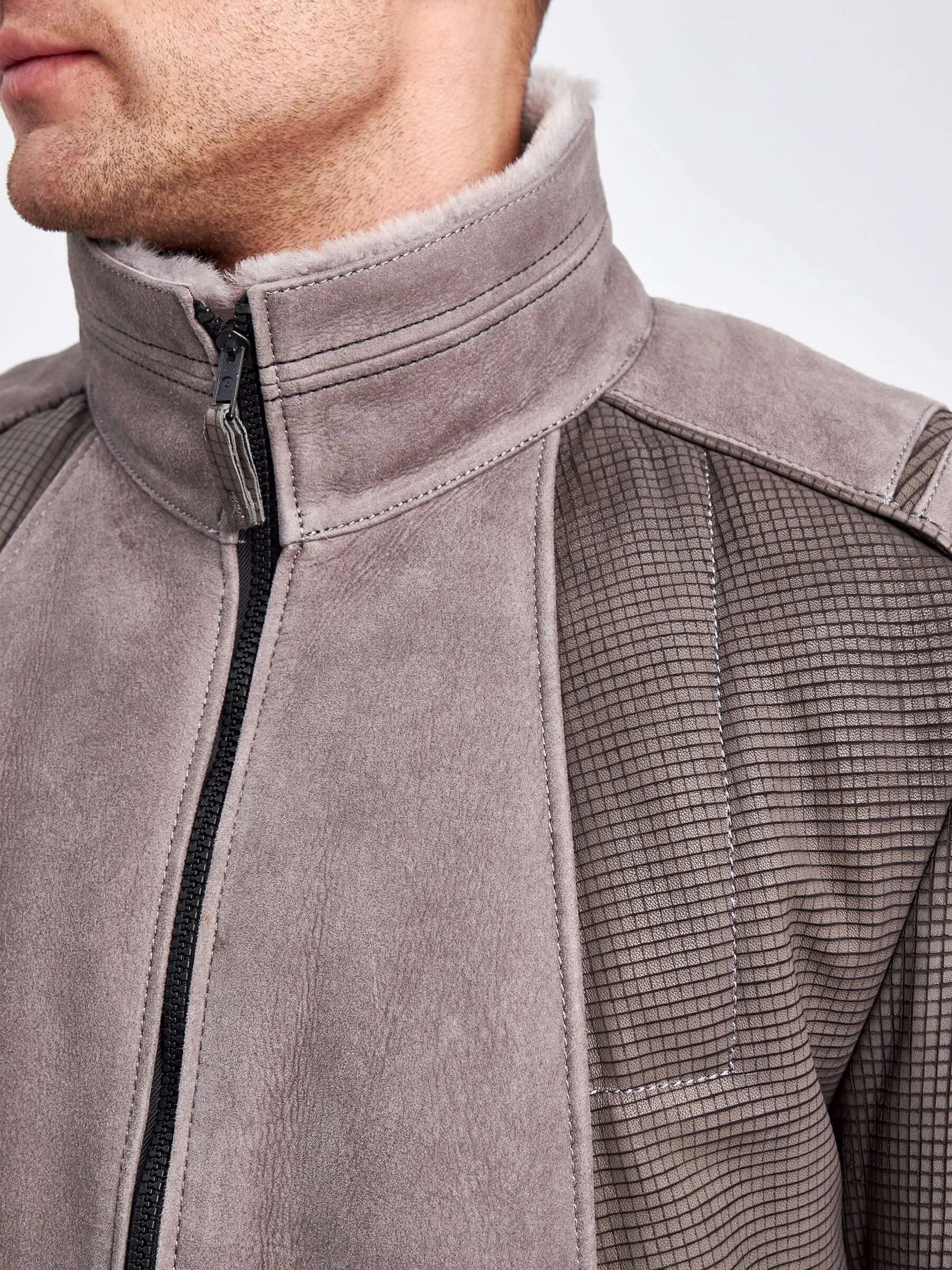 Товар комбинированная короткая мужская дубленка 40072, серая, короткая, размер 50, артикул 71240 выполнен из овчина "мерино" с застежкой молния. Рассчитан на сезон: зима. Длина изделия 65 см, силуэт прямой.