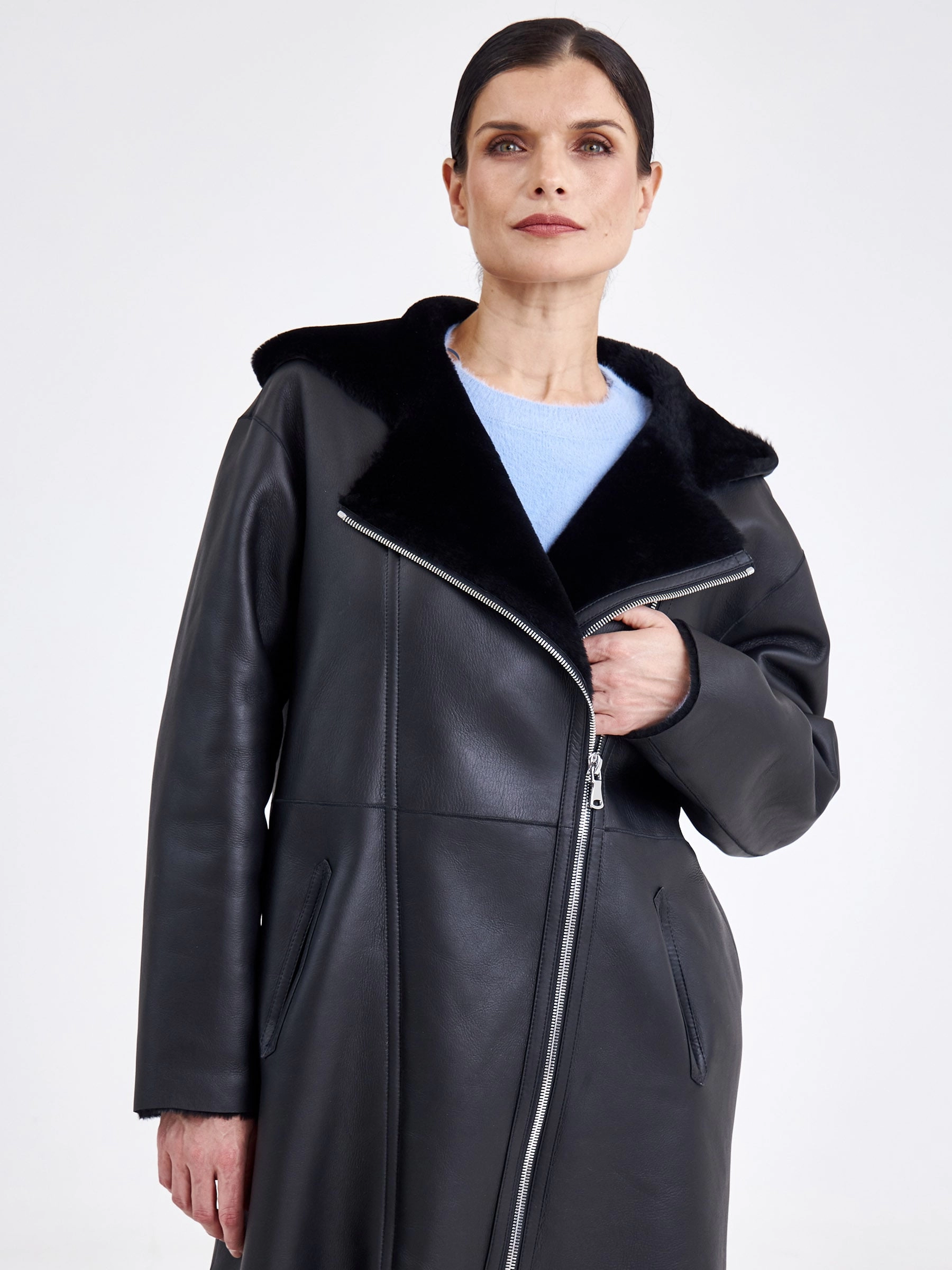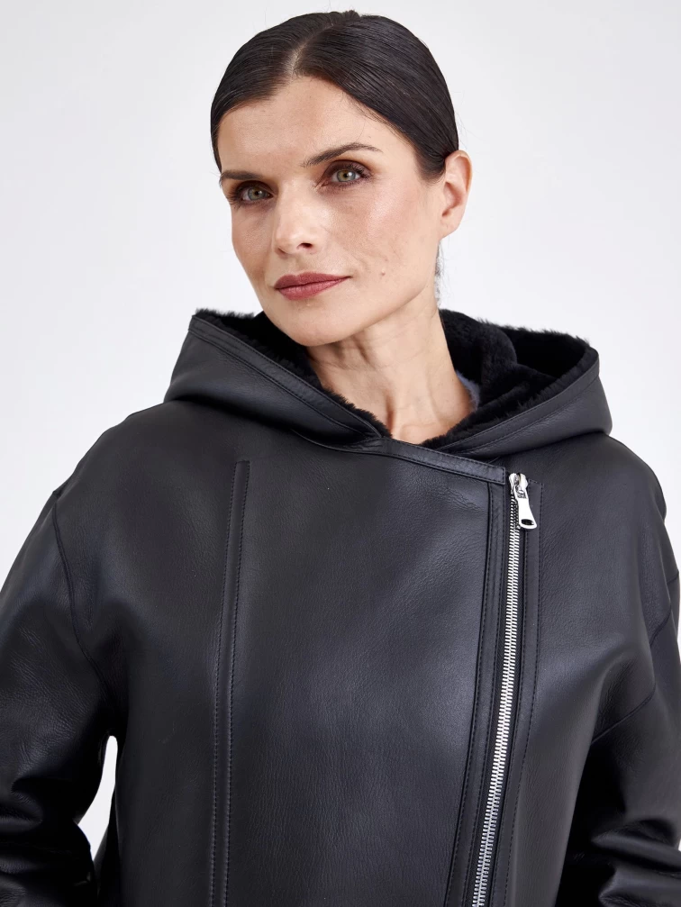 Эта дубленка создана не для подиума, а для жизни. Мастера сшили изделие из бережно выделанной плотной овчины в универсальном черном цвете. Дубленка получилась максимально теплой, но при этом легкой и комфортной. Прямой крой, глубокий капюшон, идеальная посадка по фигуре.Застежка-двухзамковая молния. Отсутствие декора, позволяет делать модель универсальной и всегда востребованной.