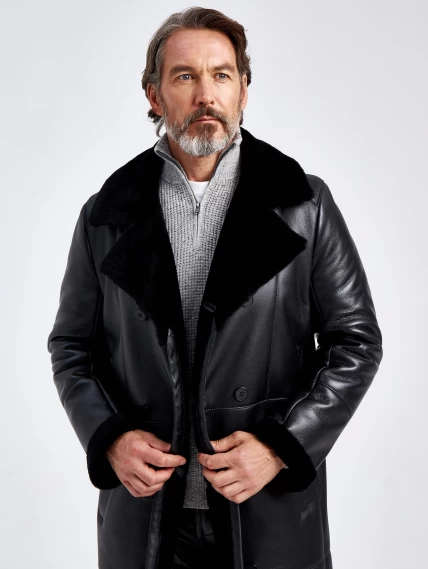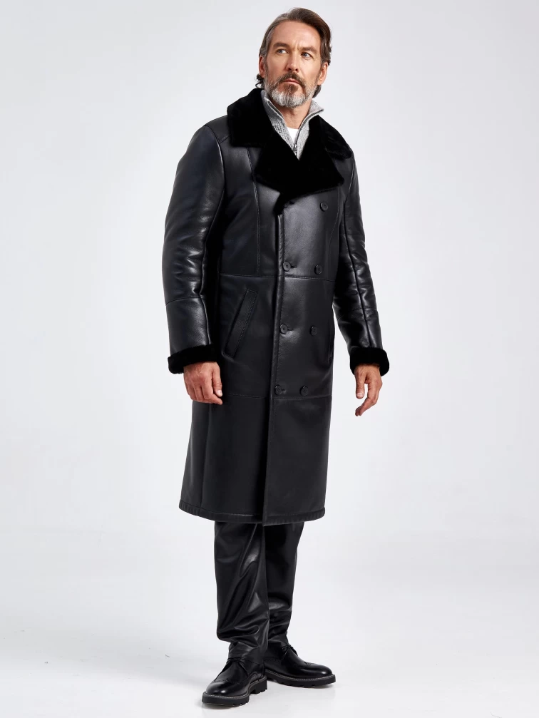 Товар длинная двубортная мужская дубленка премиум класса 432, черная, размер 50, артикул 70630 выполнен из овчина "мерино" с застежкой пуговицы. Рассчитан на сезон: осень-зима. Длина изделия 114 см, силуэт прямой.