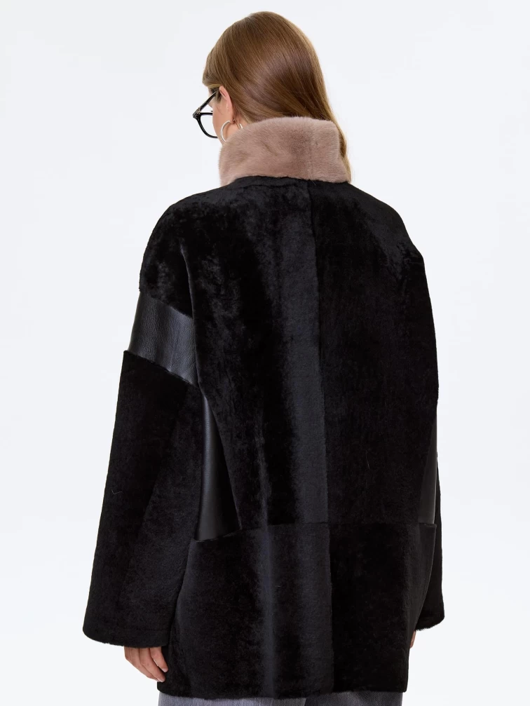Дубленка на молнии с норковым воротником для женщин премиум класса 2057, черная, размер 52, артикул 62500