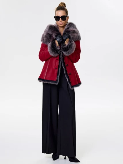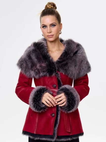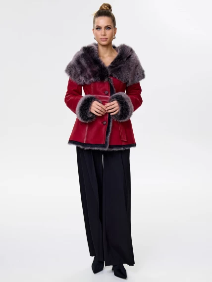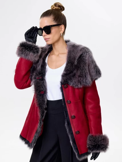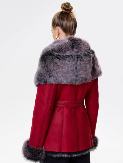 Короткая женская дубленка из тосканы с капюшоном 122, красная, размер 44, артикул 13751