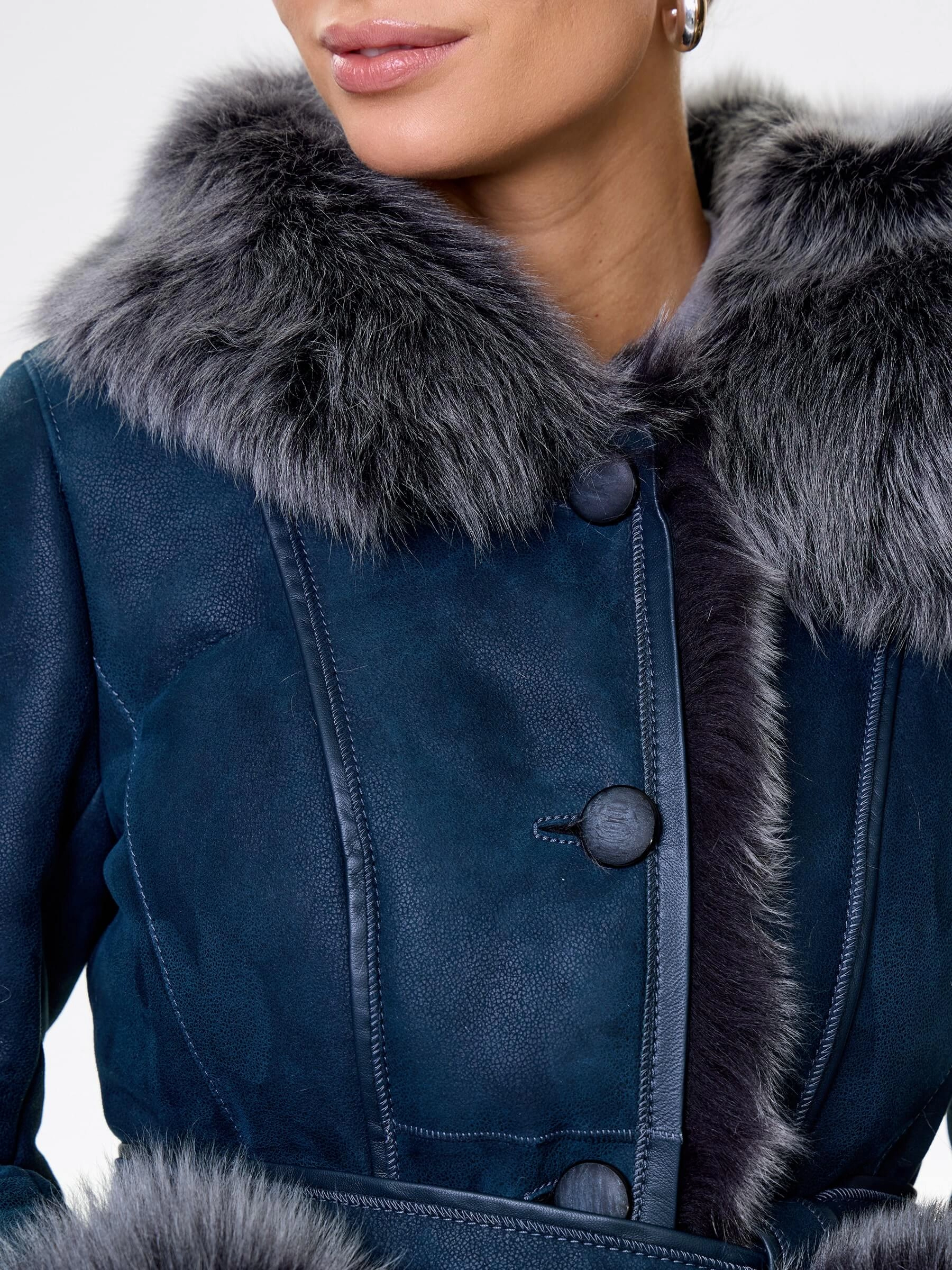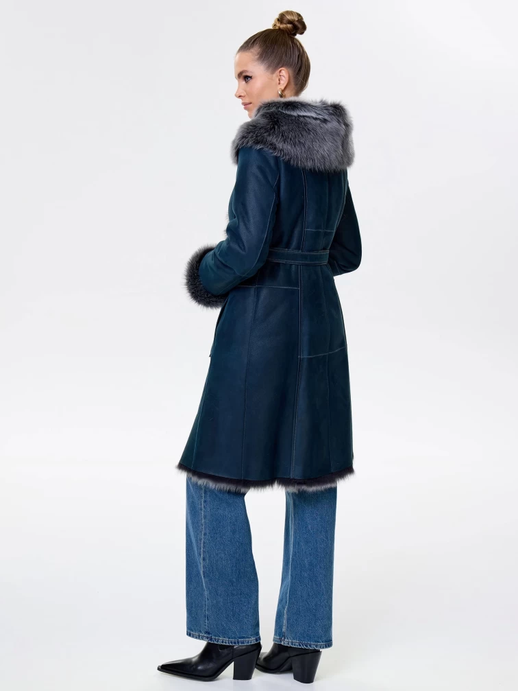 Длинная дублёнка с капюшоном из тосканской овчины. Роскошная полуприлегающая модель премиум-класса: густой нежнейший мех глубокого оттенк подарит королевское тепло даже в лютый мороз, а объёмный капюшон создаст уютный кокон от непогоды или элегантно ниспадет на плечи. Защитное покрытие убережёт от царапин, а идеальная посадка по фигуре, боковые карманы и длинный пояс подчеркнут силуэт — сочетайте с чёрными джинсами, вязаными платьями или кожаными брюками для безупречного зимнего образа! Преимущество: короткая длина, полуприлегающий крой - это мобильность для города и элегантность для вечера.
