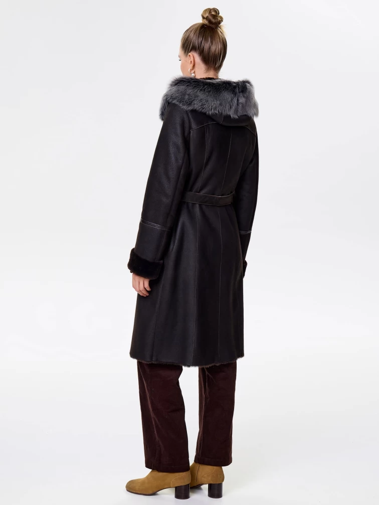 Женская дубленка косуха с капюшоном из тосканы 283, коричневая, размер 44, артикул 13492