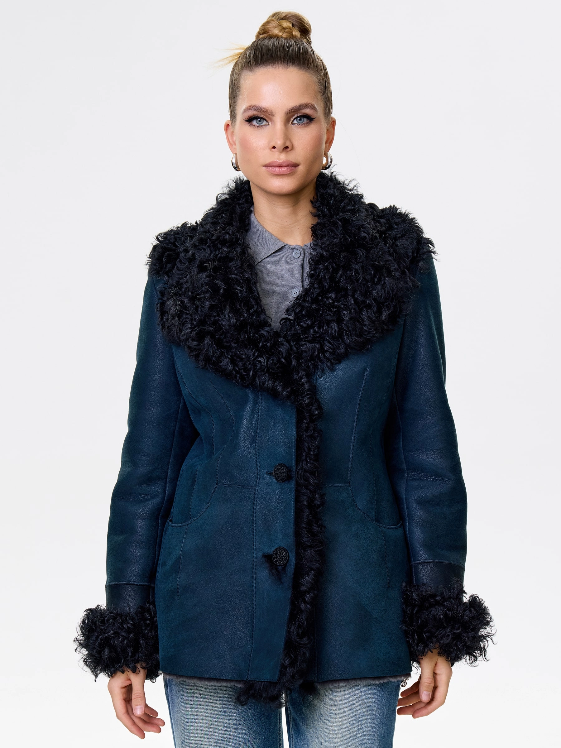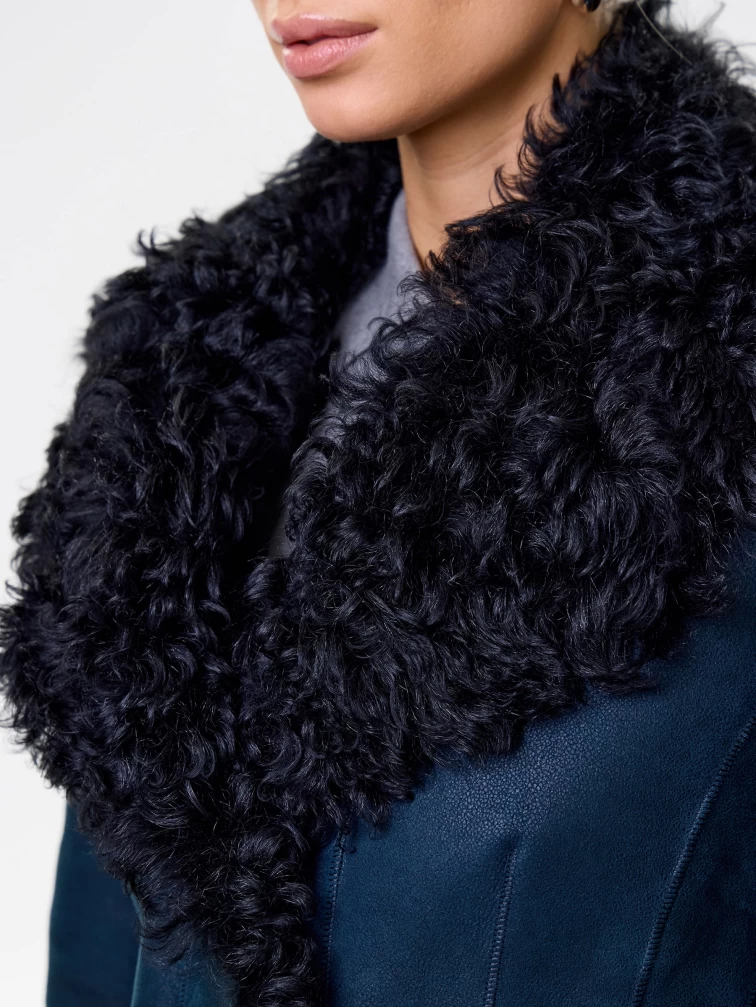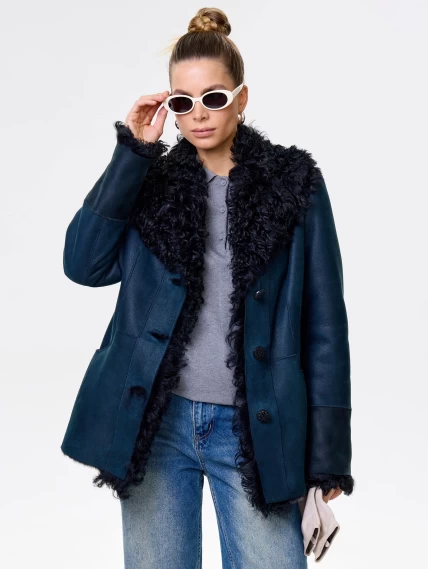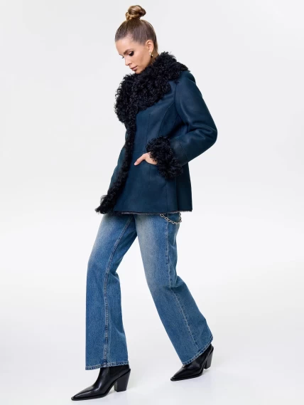 Короткая женская дубленка с овчиной тиградо 289, синяя, размер 42, артикул 61951