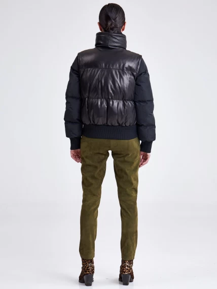 Комбинированная стеганая женская кожаная куртка бомбер 3029, черная, размер 46, артикул 23370
