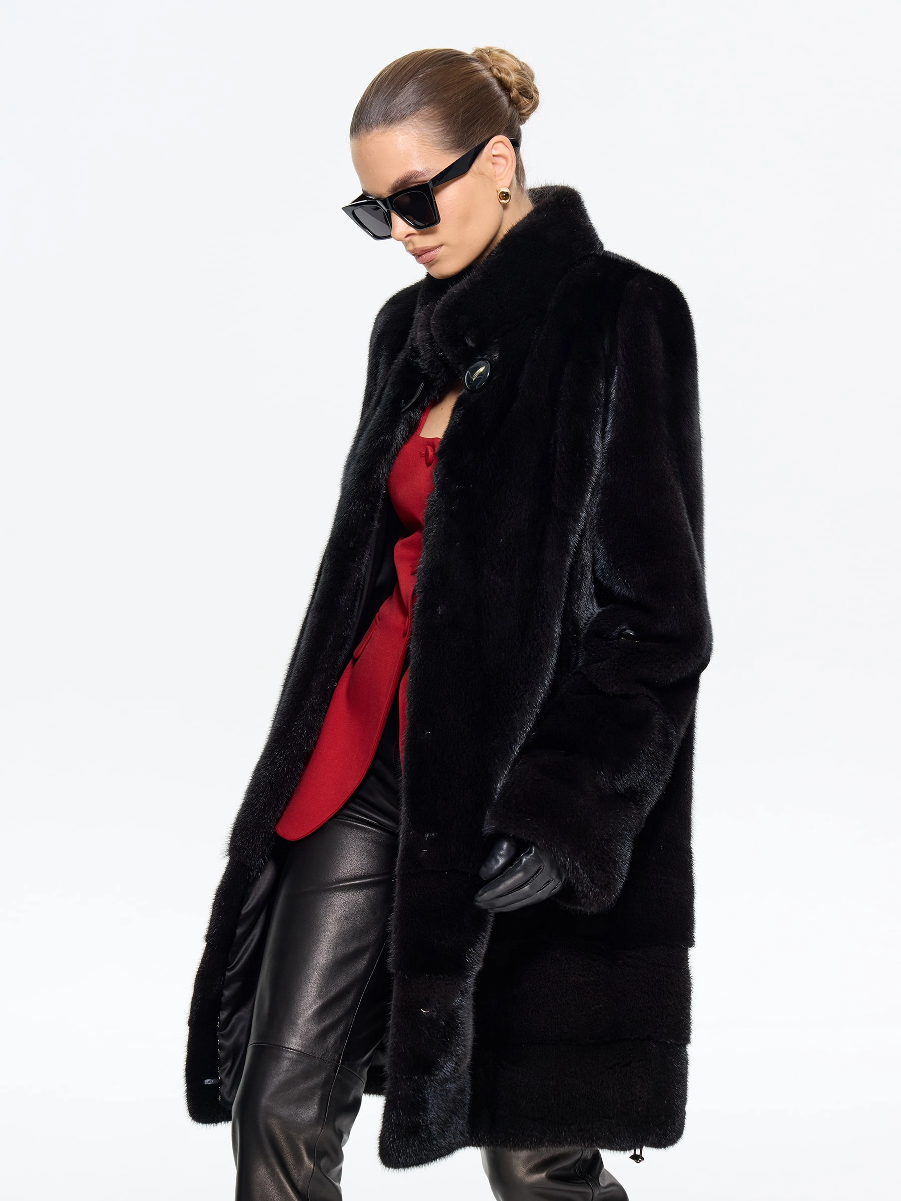 Элегантная шуба из меха норки премиум-класса прямого силуэта и длиной 100 см с воротником-стойкой и втачными рукавами. Эта классическая модель с диагональной раскладкой по подолу и рукавам, карманами и регулируемой внутренней кулиской для изменения силуэта, станет практичной и статусной вещью в вашем гардеробе. Стилисты рекомендуют носить эту роскошную шубу с капюшоном с джинсами-скинни и высокими сапогами для повседневного образа, а также с платьем-миди и каблуками для выхода в свет — её универсальность и утончённая классика покорят любую женщину.