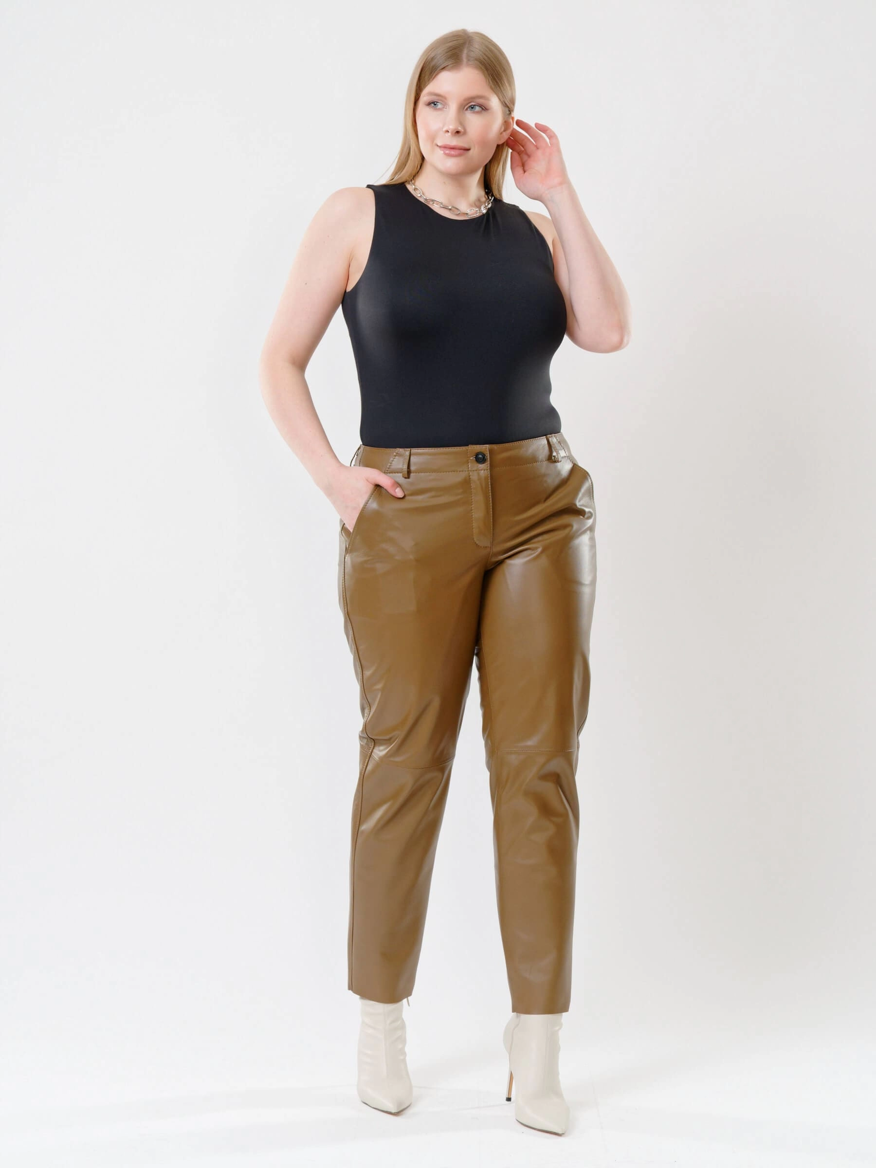 Товар коричневые зауженные женские кожаные брюки 03, размер 48, артикул 85522 выполнен из натуральной кожи с застежкой молния. Рассчитан на сезон: демисезон. Длина изделия 98 см, силуэт зауженный.
