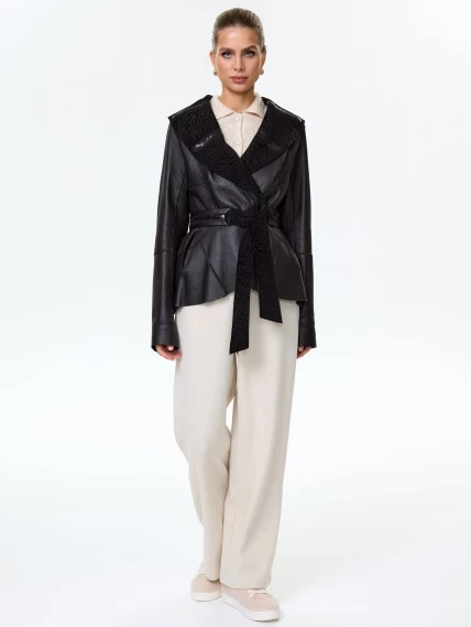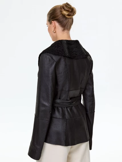 Короткая женская дубленка из астрагана 244, черная, размер 46, артикул 64620