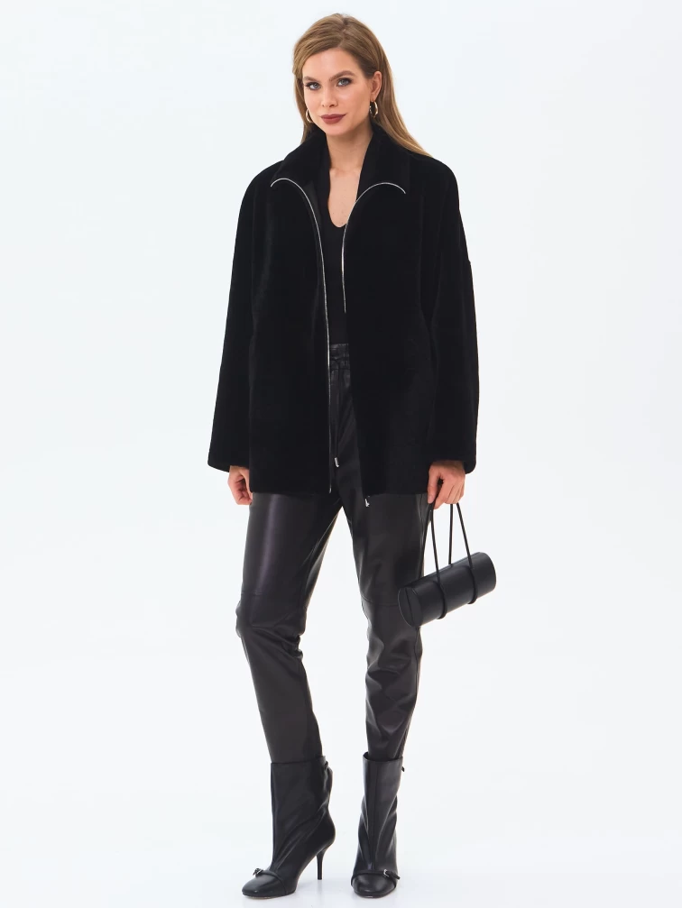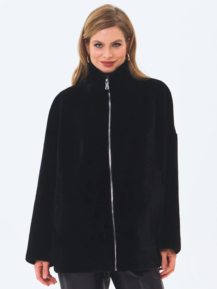 Товар короткая женская дубленка из астрагана на молнии 2065, черная, размер 48, артикул 64680 выполнен из астраган с застежкой клипсы. Рассчитан на сезон: зима. Длина изделия 70 см, силуэт свободный.