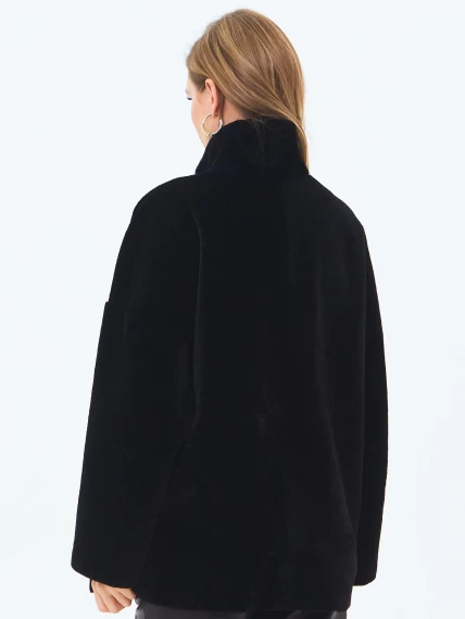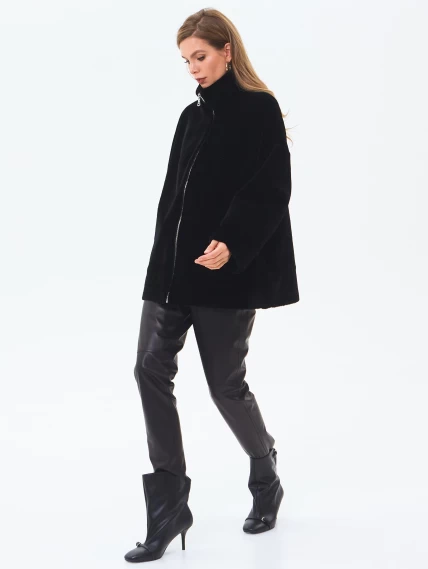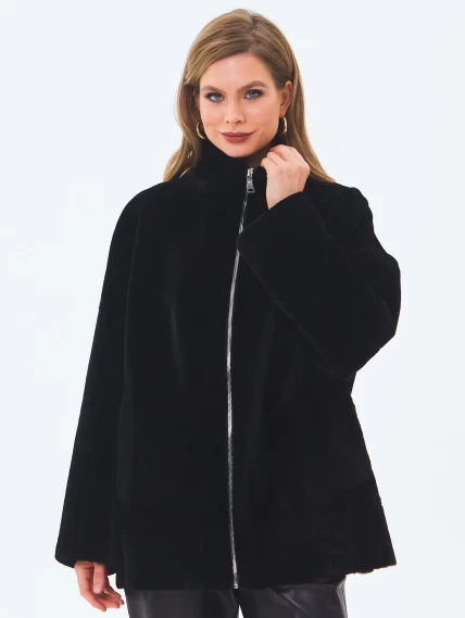Короткая женская дубленка из астрагана на молнии 2065, черная, размер 48, артикул 64680