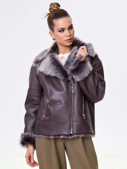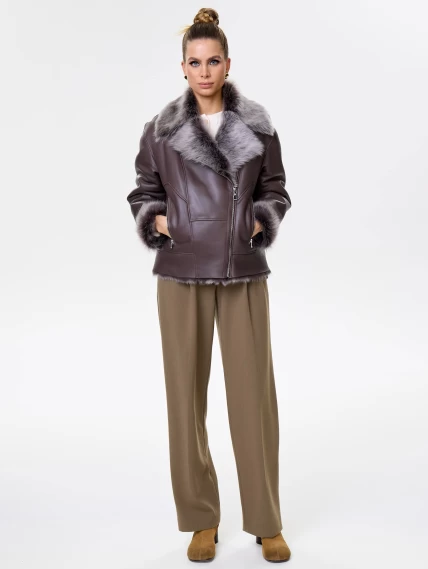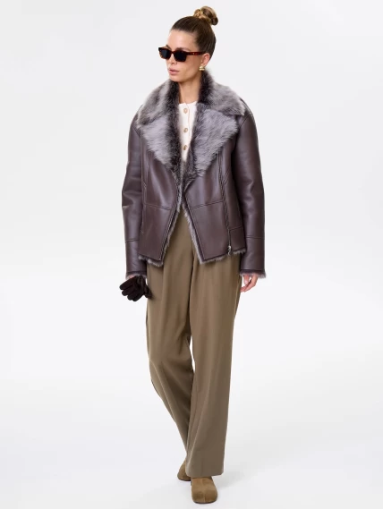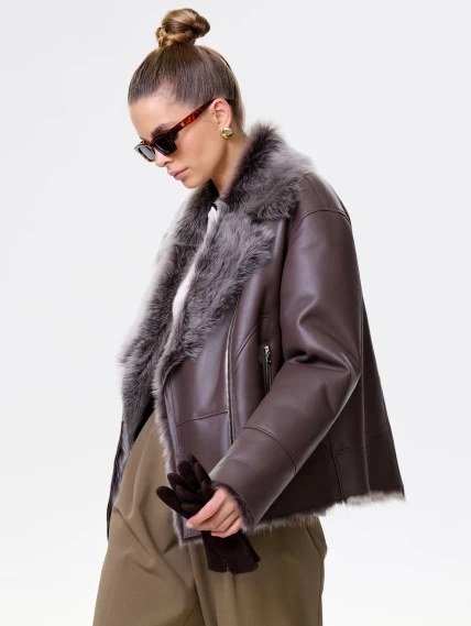 Короткая женская дубленка из тосканы премиум класса 2049, коричневая, размер 48, артикул 64200