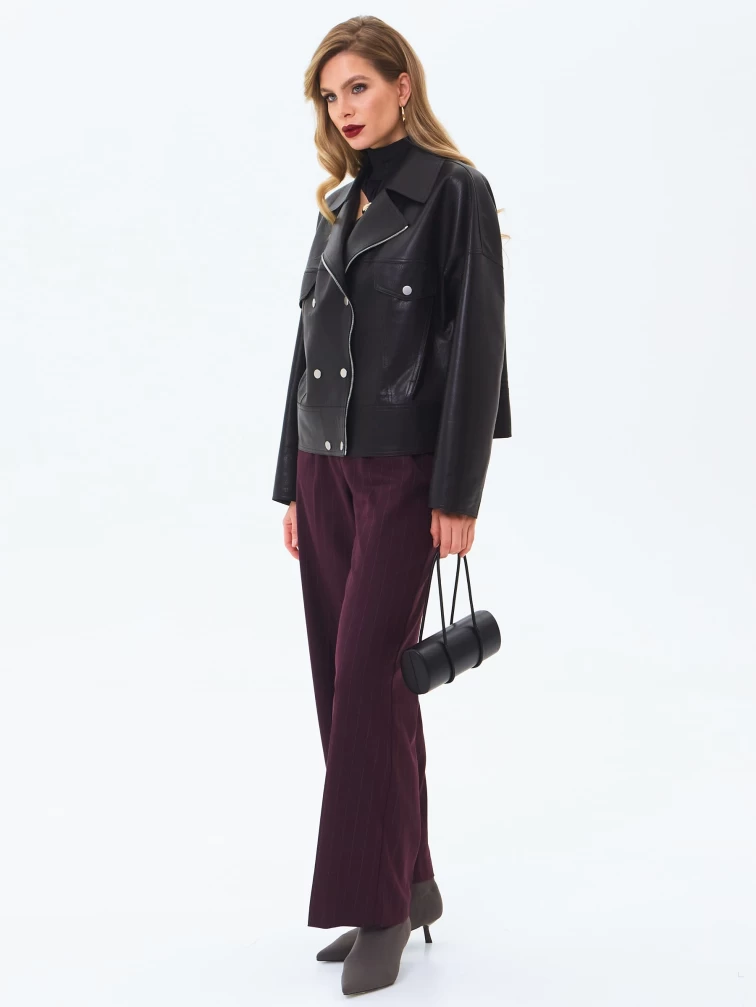 Короткая женская кожаная куртка косуха премиум класса 3085, черная, размер 46, артикул 24610