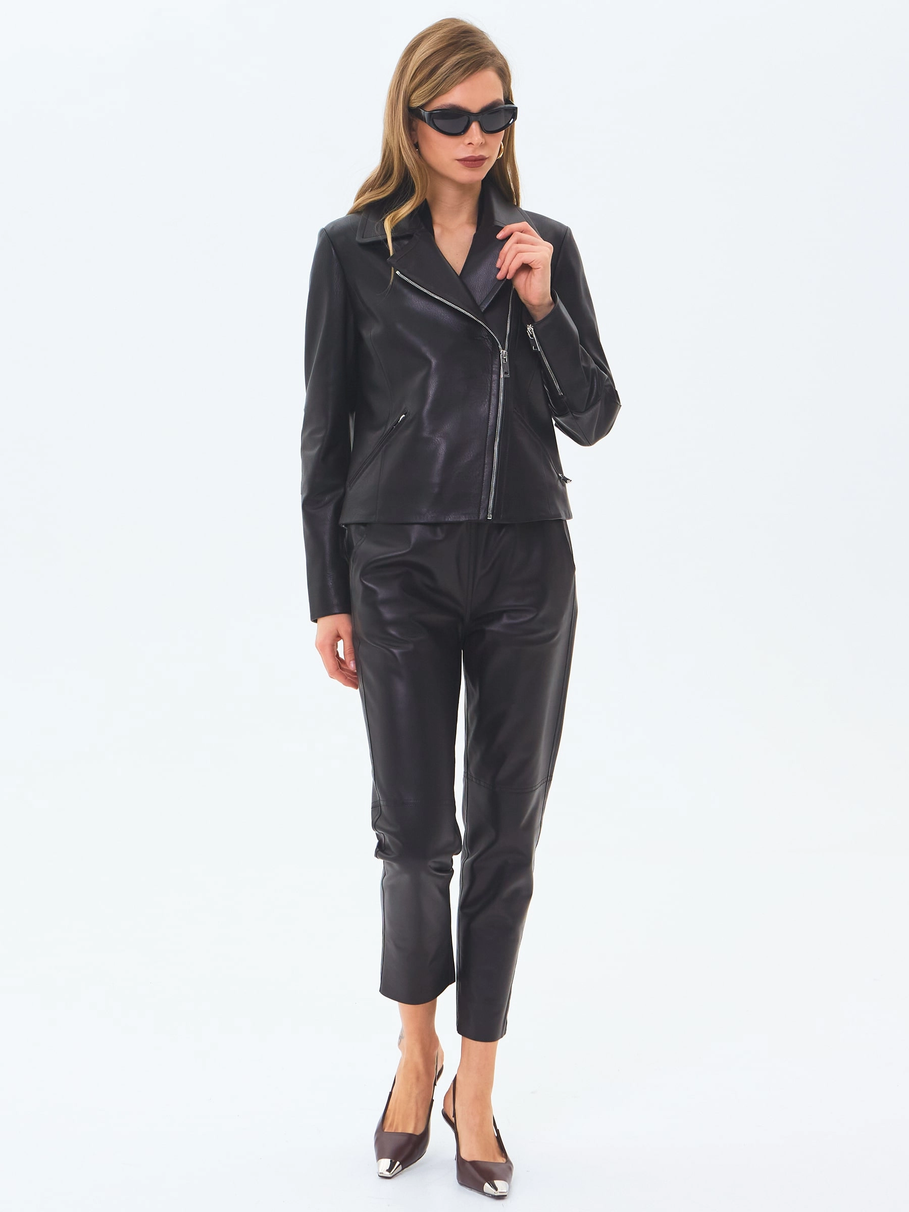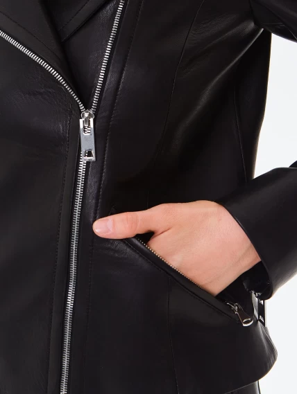 Товар короткая женская кожаная куртка косуха премиум класса 3095, черная, размер 46, артикул 24440 выполнен из натуральной кожи с застежкой молния. Рассчитан на сезон: весна-лето. Длина изделия 58 см, силуэт прямой.