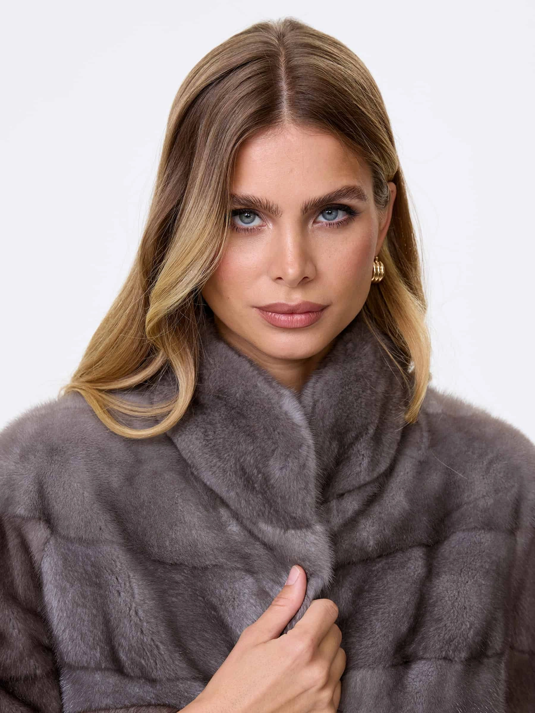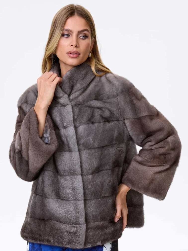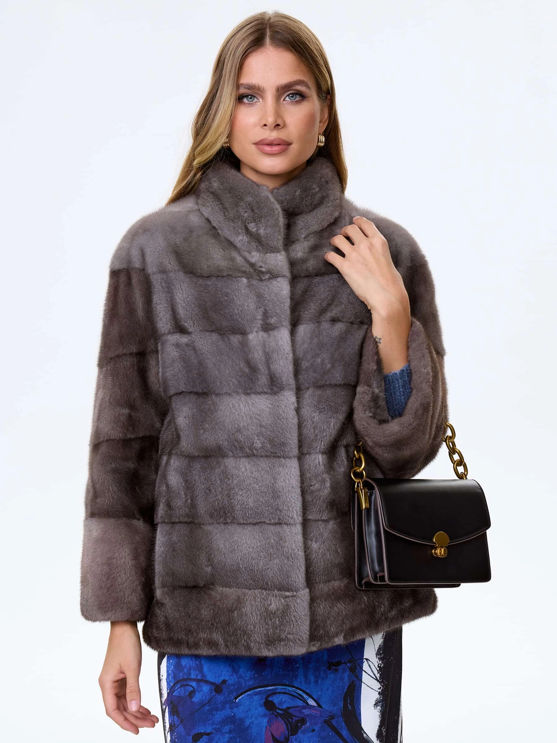 Товар короткая норковая женская поперечная шуба ольга(в), графитовая, размер 46, артикул 34040 выполнен из норка с застежкой клипсы. Рассчитан на сезон: зима. Длина изделия 64 см, силуэт прямой.