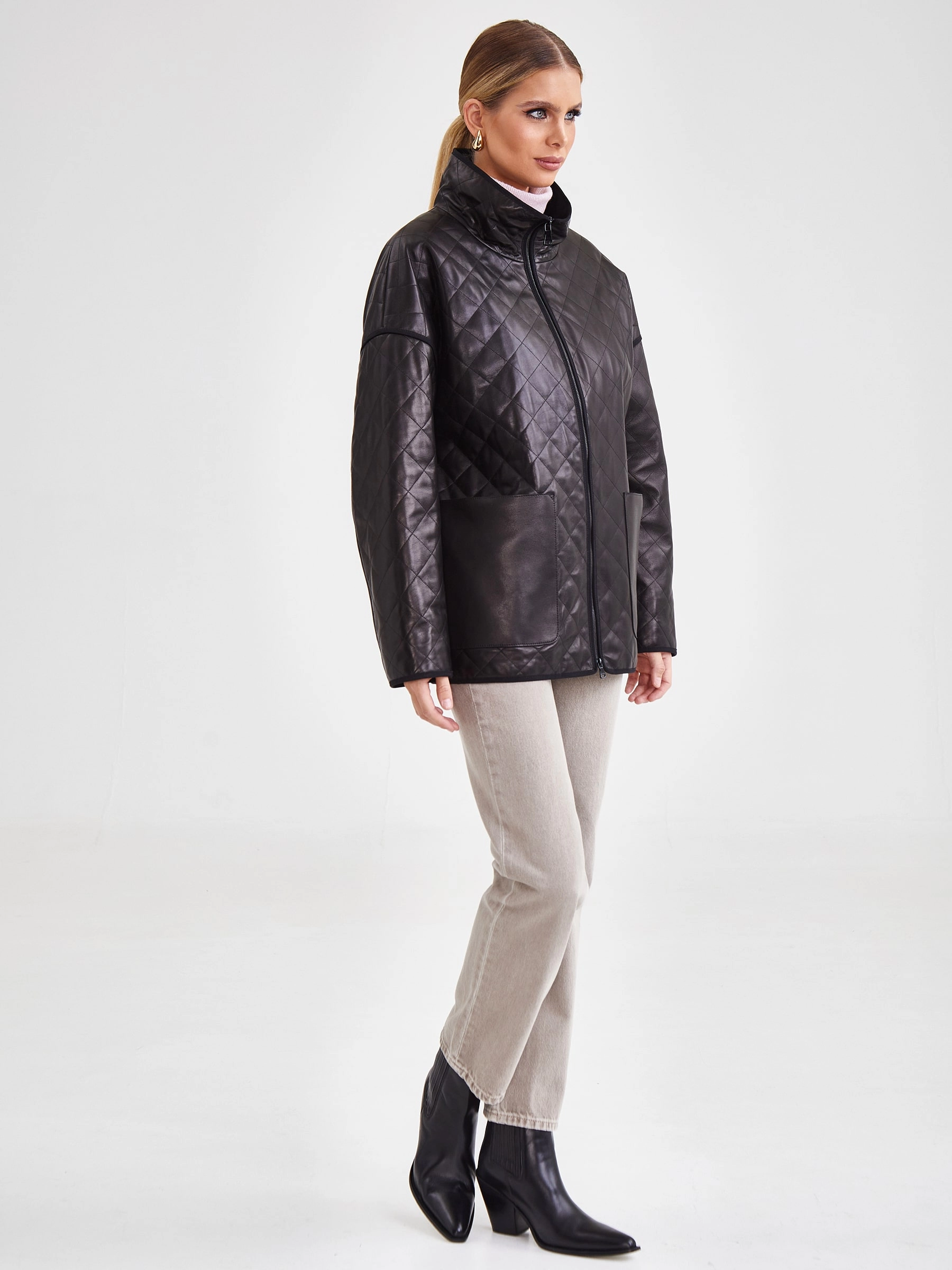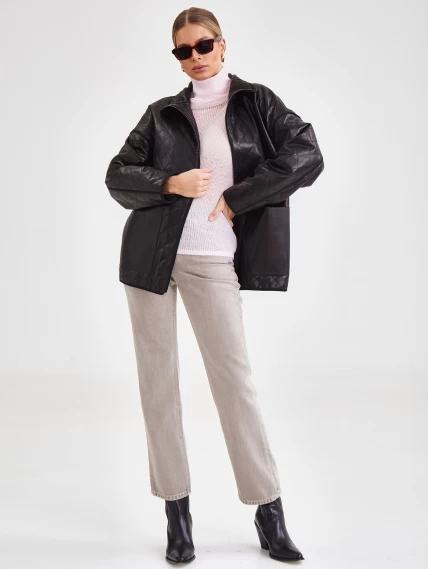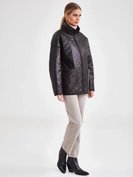 Товар кожаная женская стеганая куртка премиум класса 3043, черная, размер 52, артикул 23261 выполнен из натуральной кожи с застежкой молния. Рассчитан на сезон: весна-лето. Длина изделия 70 см, силуэт прямой.
