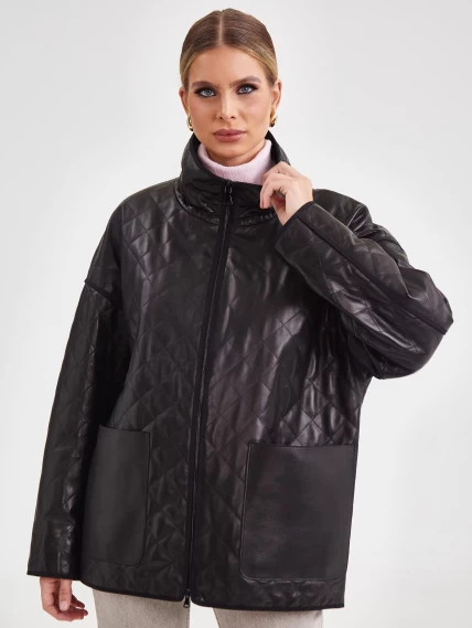 Кожаная женская стеганая куртка премиум класса 3043, черная, размер 52, артикул 23261