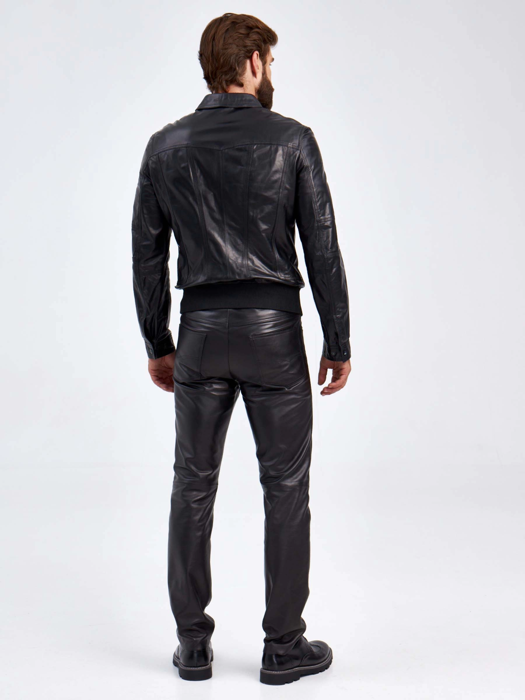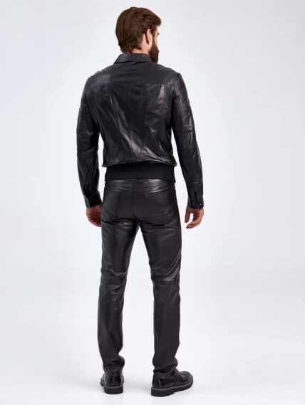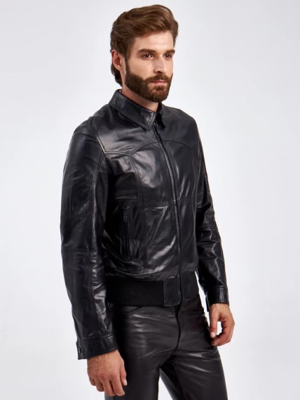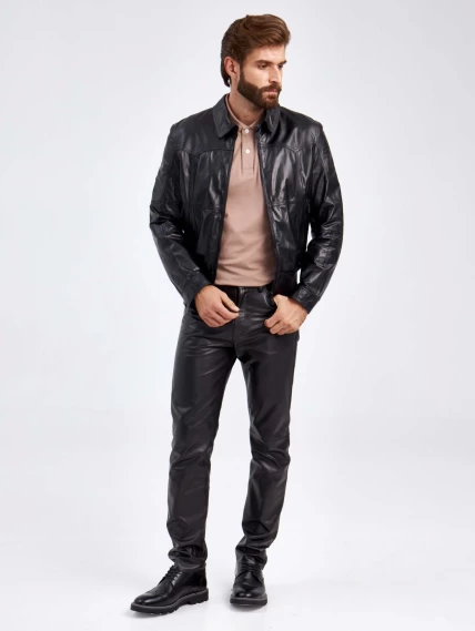 Короткая кожаная куртка мужская 2010-13(в), черная, размер 50, артикул 29170
