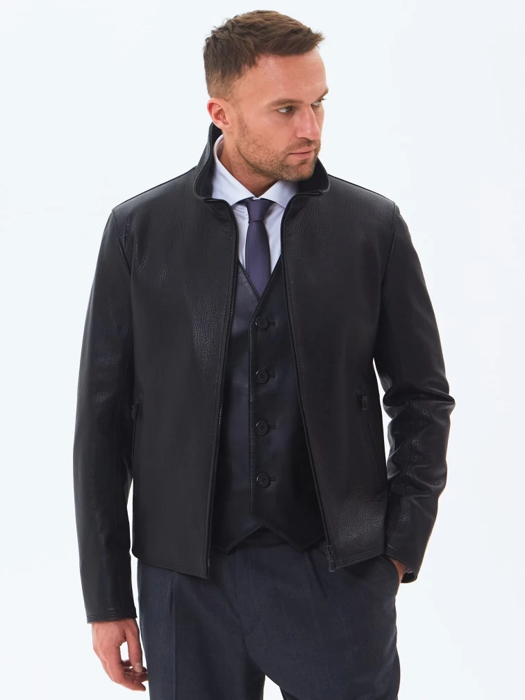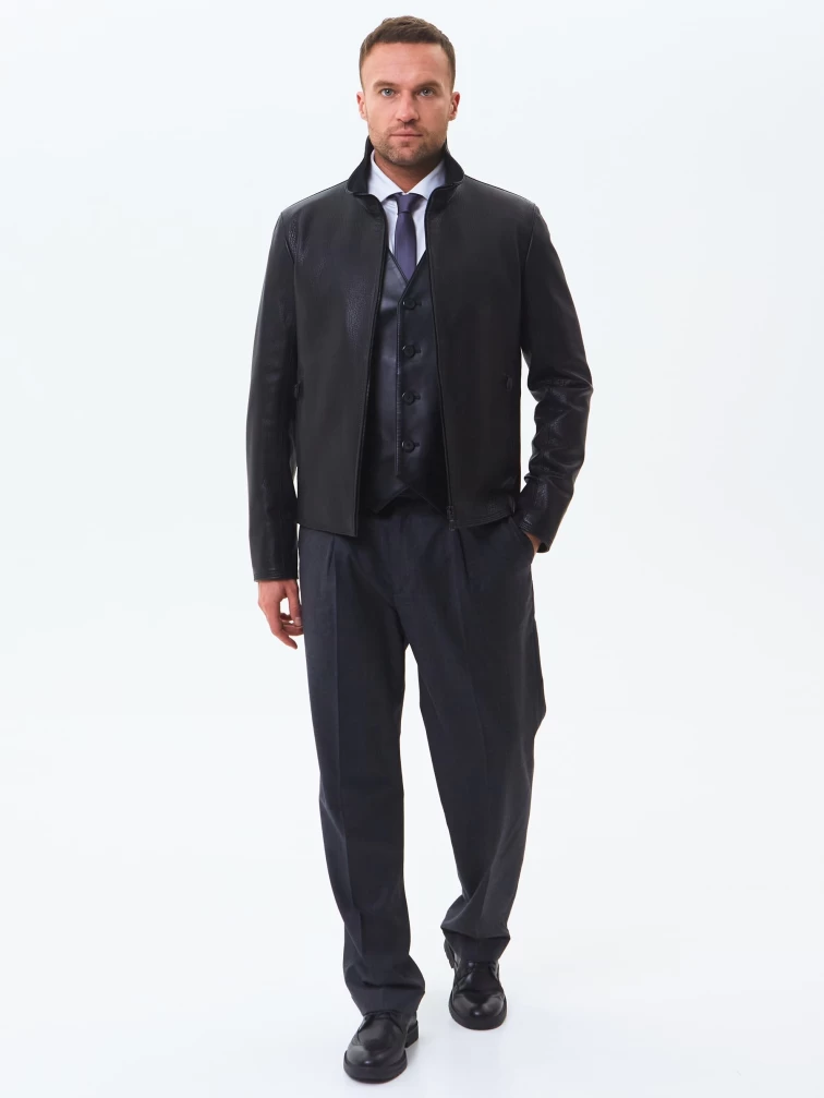 Товар короткая мужская кожаная куртка 2010-9, черная, размер 46, артикул 29250 выполнен из натуральной кожи с застежкой молния. Рассчитан на сезон: демисезон. Длина изделия 65 см, силуэт полуприлегающий.