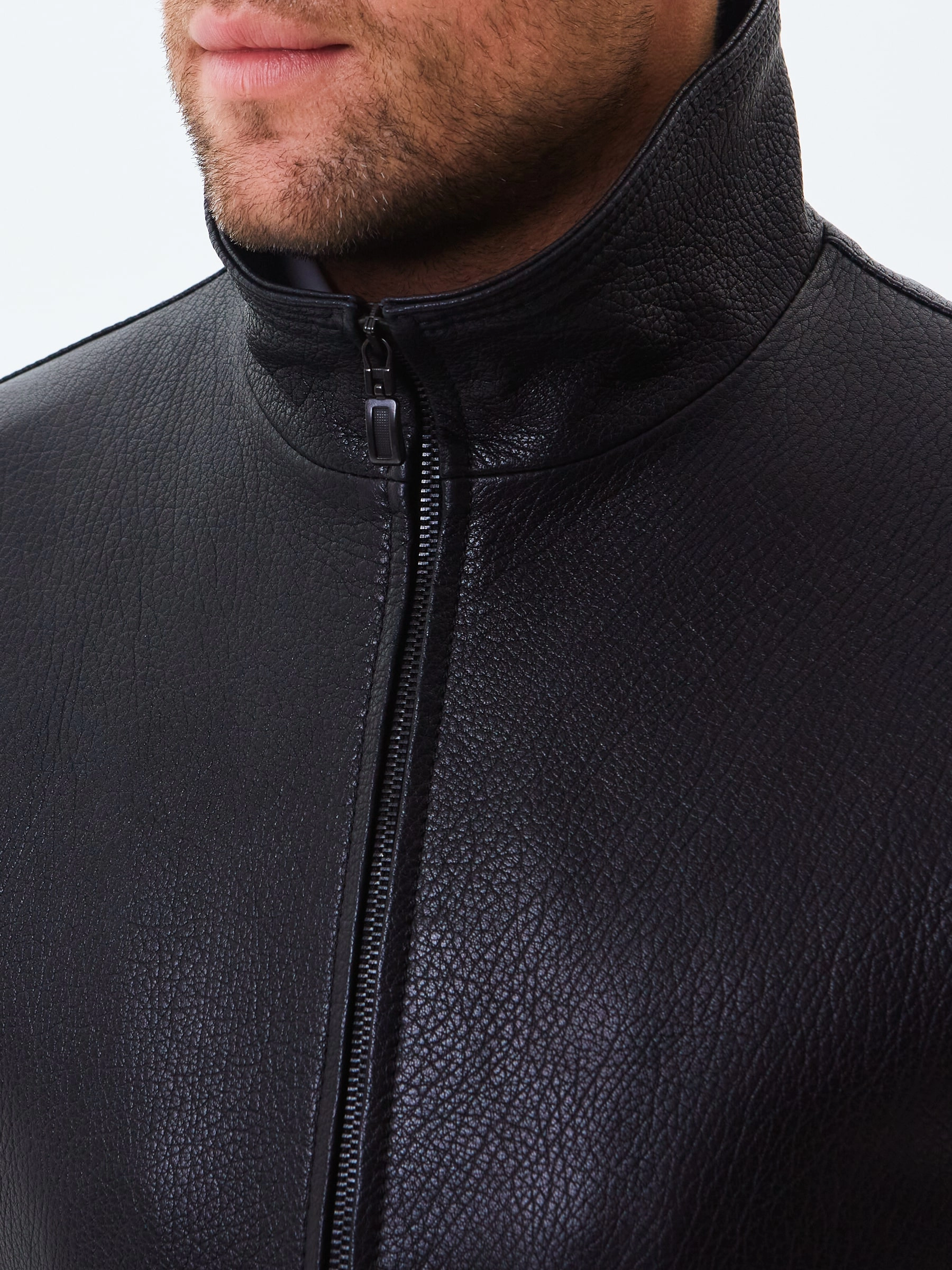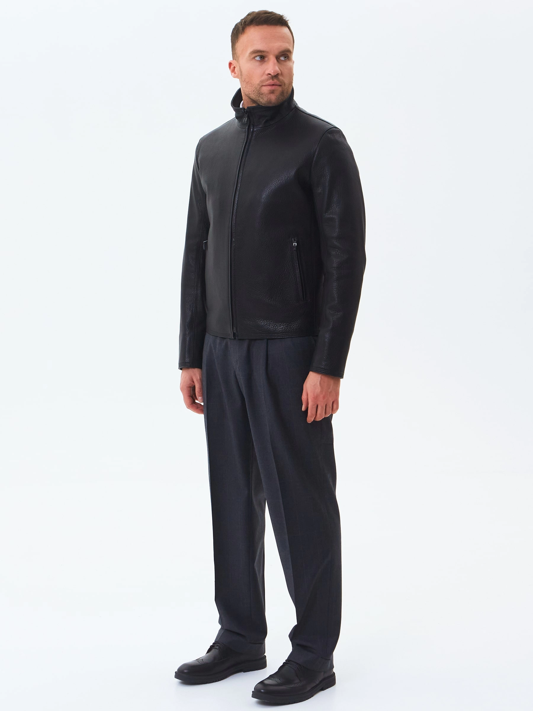 Отличным решением для прохладной погоды послужит короткая кожаная куртка в универсальном черном цвете. Полуприлегающий силуэт. Воротник стойка легко трансформируется в отложной. Застежка молния. Минимум фурнитуры. Основная черта этой модели: Профессиональный пошив и комфорт.