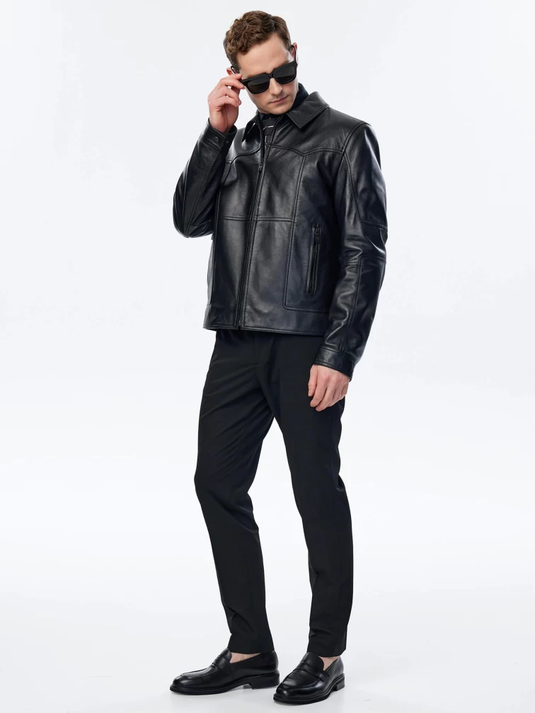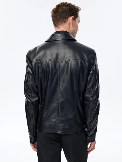 Короткая кожаная куртка для мужчин 504, черная, размер 50, артикул 29331