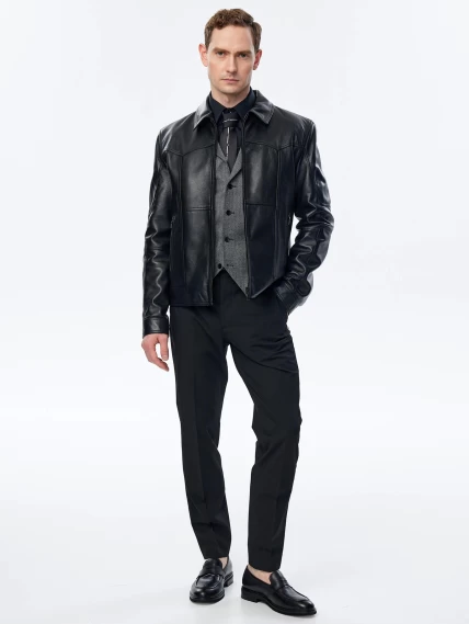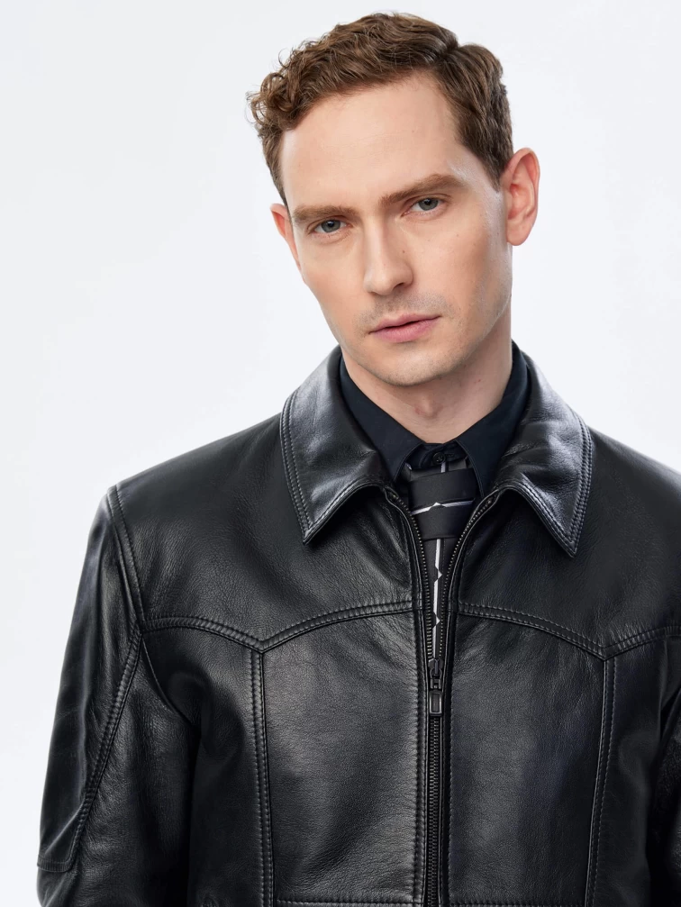 Товар короткая кожаная куртка для мужчин 504, черная, размер 50, артикул 29331 выполнен из натуральной кожи с застежкой молния. Рассчитан на сезон: весна-лето. Длина изделия 65 см, силуэт полуприлегающий.