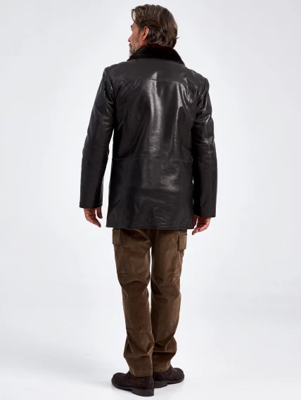 Зимняя мужская кожаная куртка на подкладке из овчины с воротником меха норки премиум класса 5450, коричневая, размер 46, артикул 40640