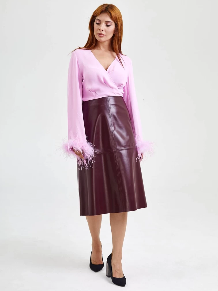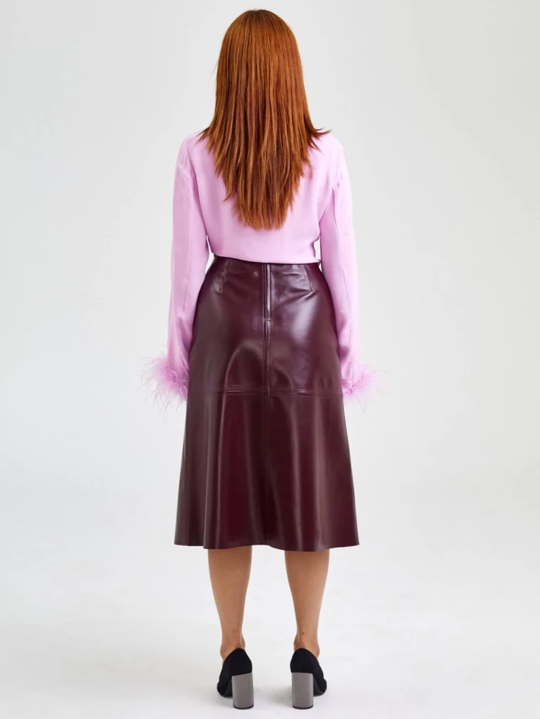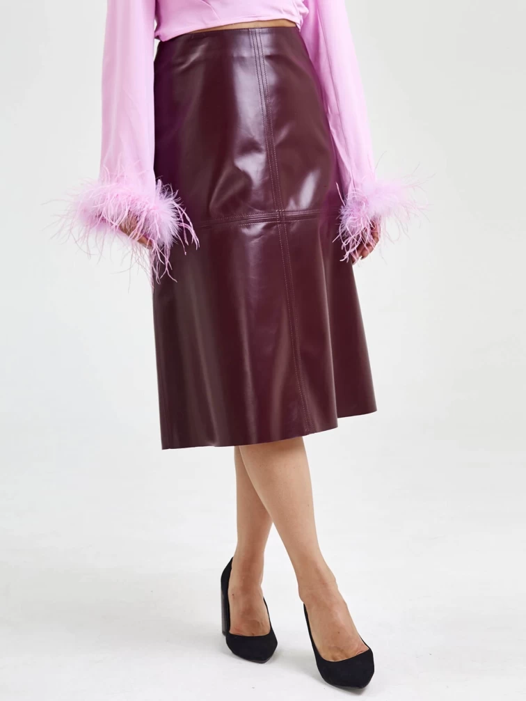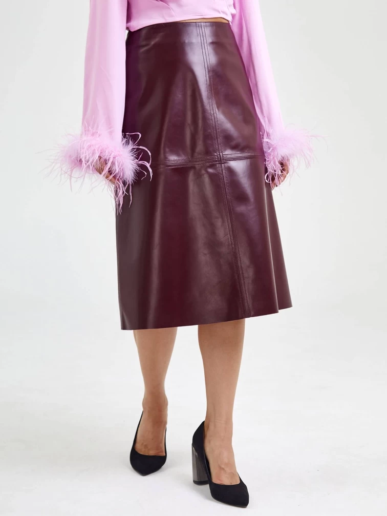 Кожаная юбка миди 09, бордовая, размер 44, артикул 85570