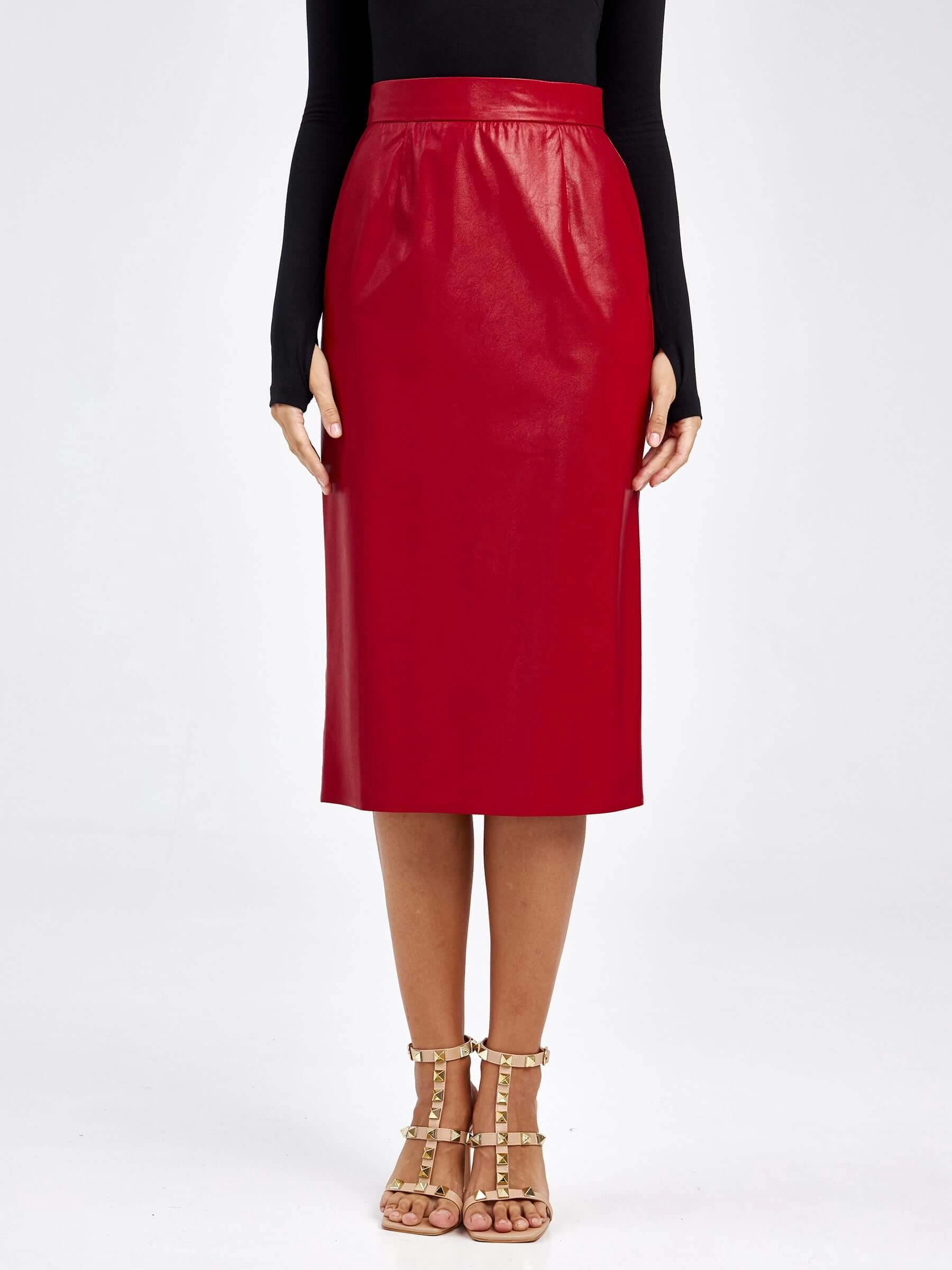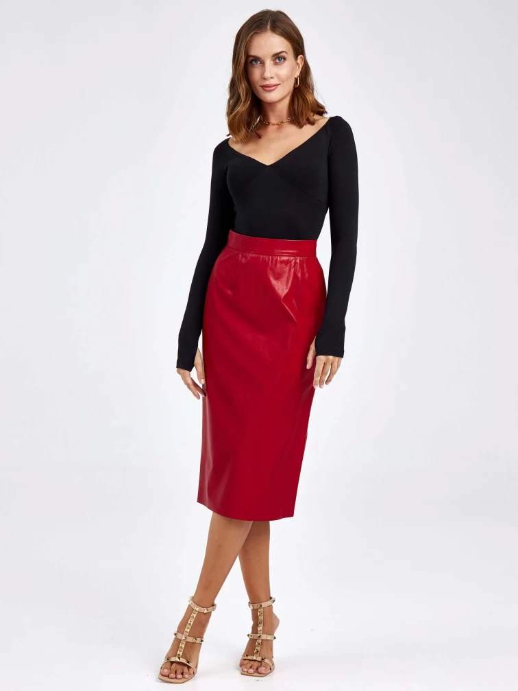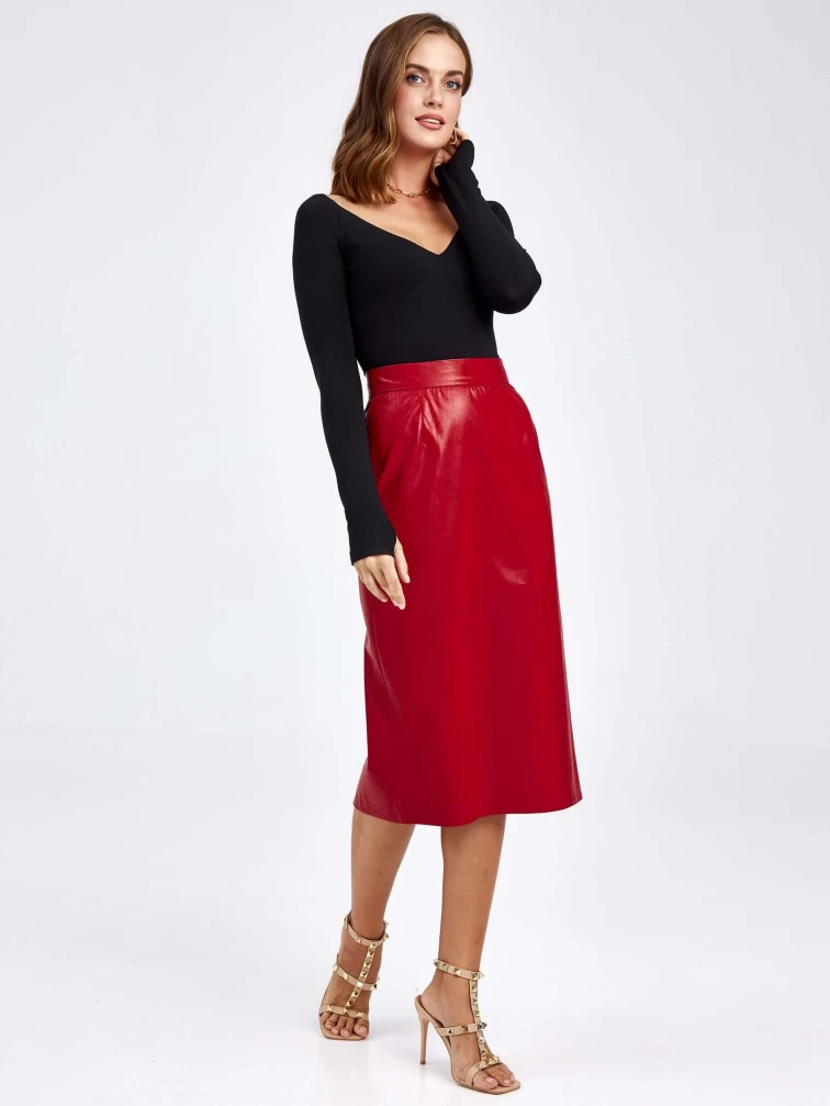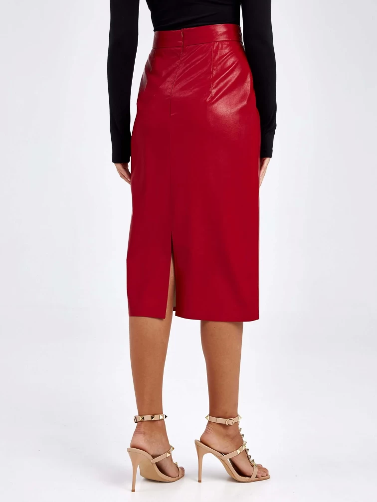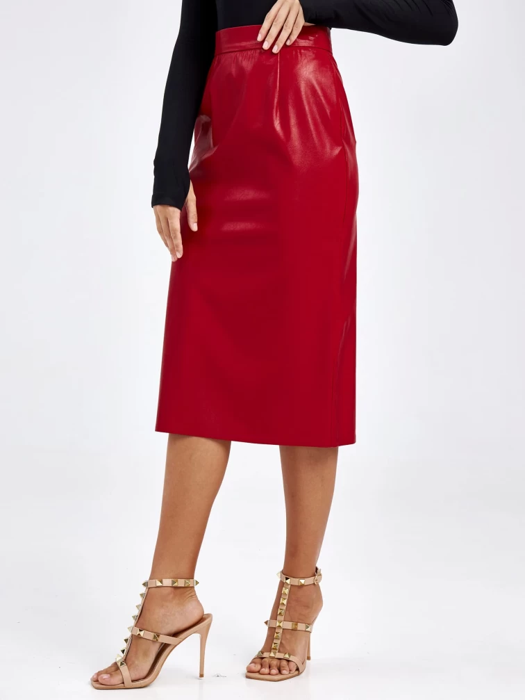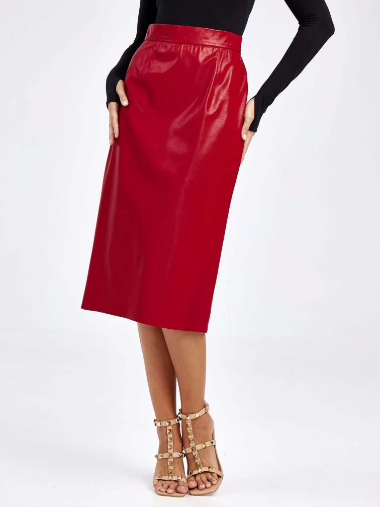 Товар женские кожаная юбка из экокожи 4540009, красная, размер 44, артикул 85740 выполнен из экокожи с застежкой молния. Рассчитан на сезон: демисезон. Длина изделия миди, силуэт прямой.