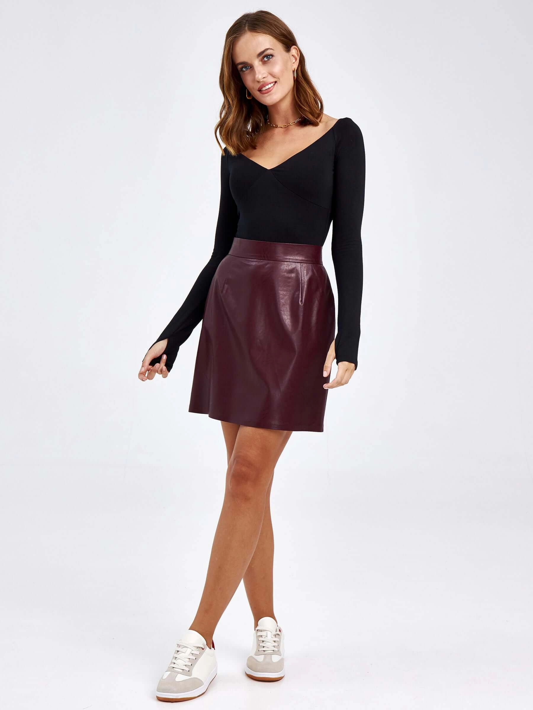 Товар женские кожаная юбка из экокожи 4666832, бордовая, размер 46, артикул 85860 выполнен из экокожи с застежкой молния. Рассчитан на сезон: демисезон. Длина изделия 51-74 см, силуэт облегающий.