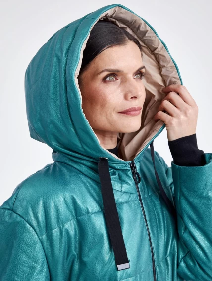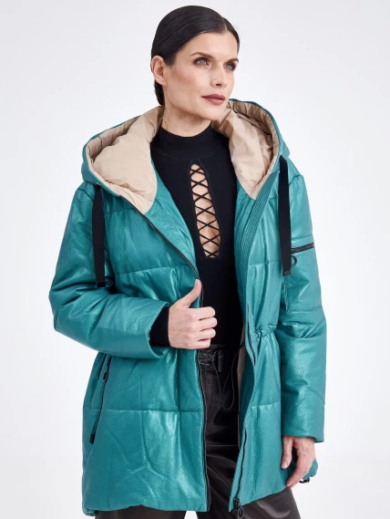 Кожаная женская куртка оверсайз с капюшоном премиум класса 3021, зеленая, размер 48, артикул 25470