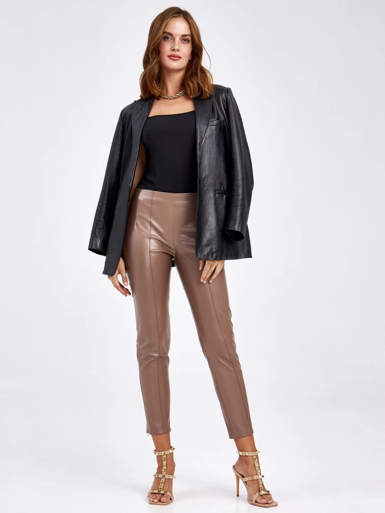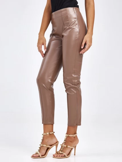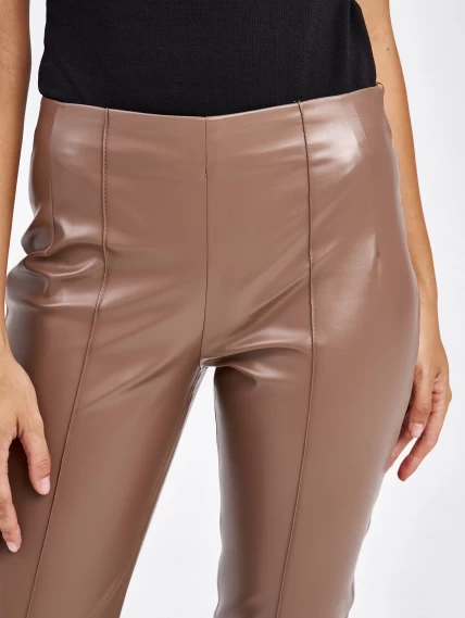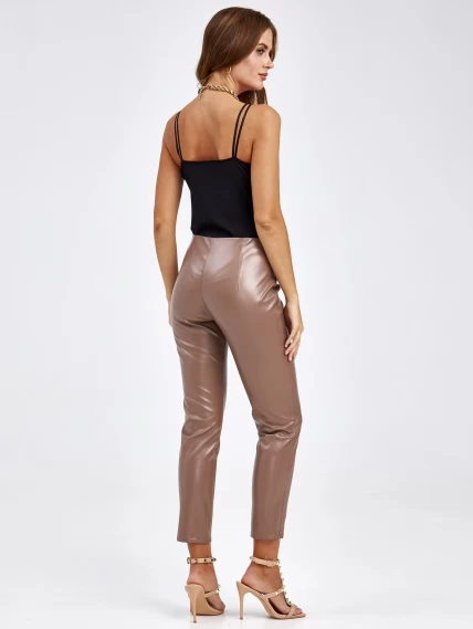 Кожаные брюки из экокожи для женщин 4820740, бежевые, размер 44, артикул 85660