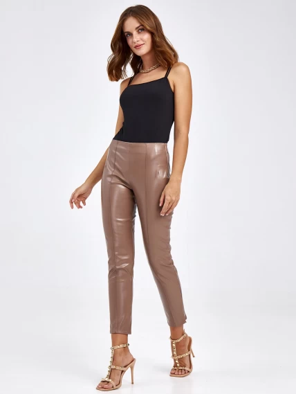 Товар кожаные брюки из экокожи для женщин 4820740, бежевые, размер 44, артикул 85660 выполнен из экокожи с застежкой молния. Рассчитан на сезон: демисезон. Длина изделия свыше 90 см, силуэт облегающий.