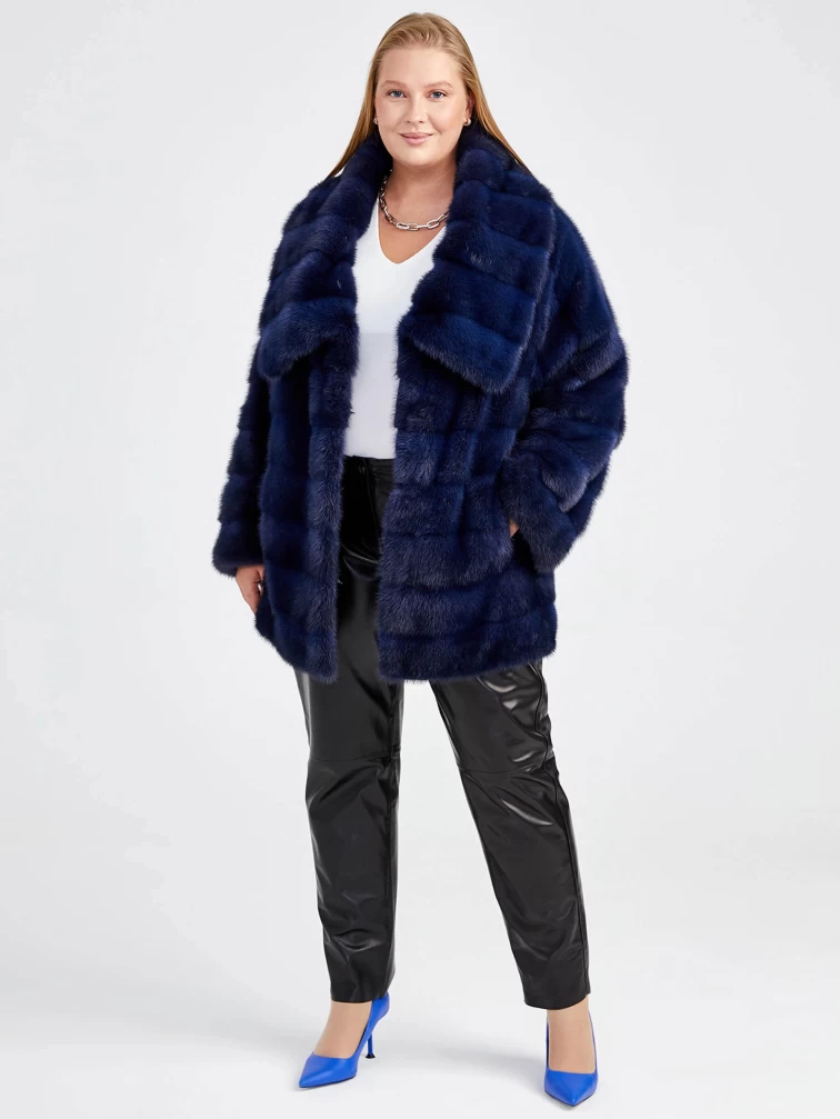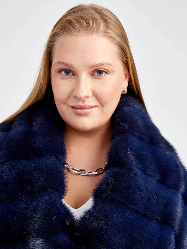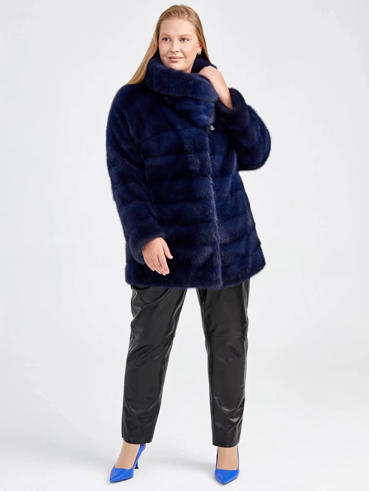 Товар куртка из меха норки женская 1150(кв), синяя, размер 52, артикул 32800 выполнен из норка с застежкой клипсы. Рассчитан на сезон: осень-зима. Длина изделия 51-74 см, силуэт прямой.