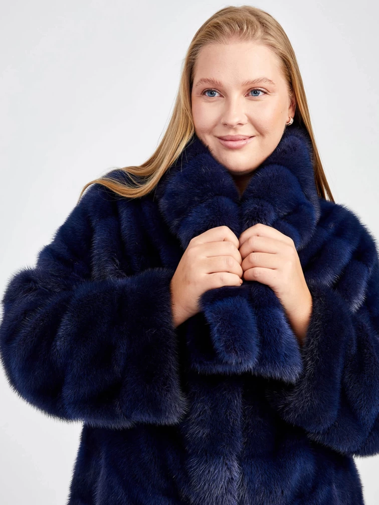 Куртка из меха норки женская 1150(кв), синяя, размер 52, артикул 32800